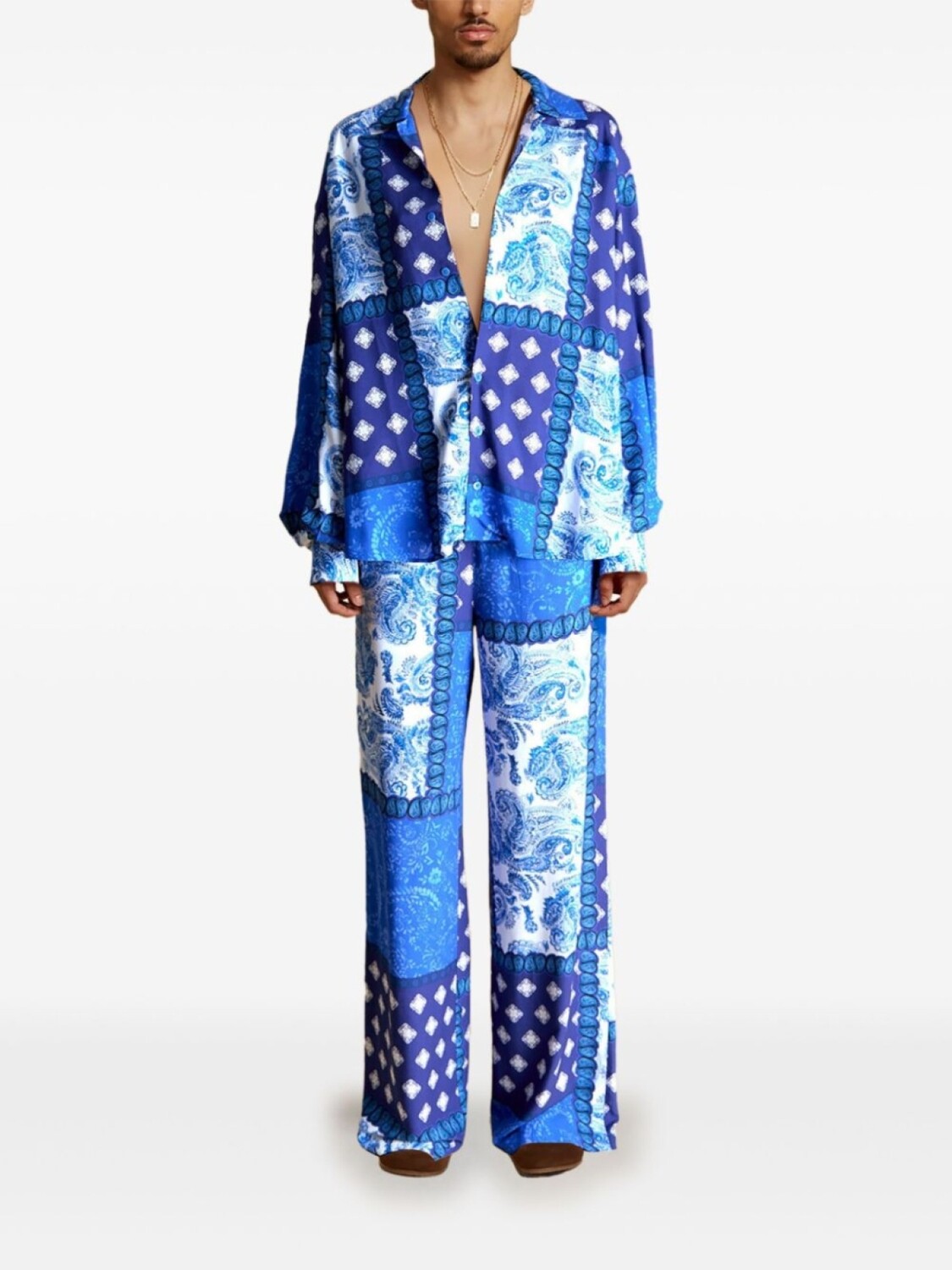 Donde Esteban рубашка с принтом в технике пэчворк, синий 44 584₽