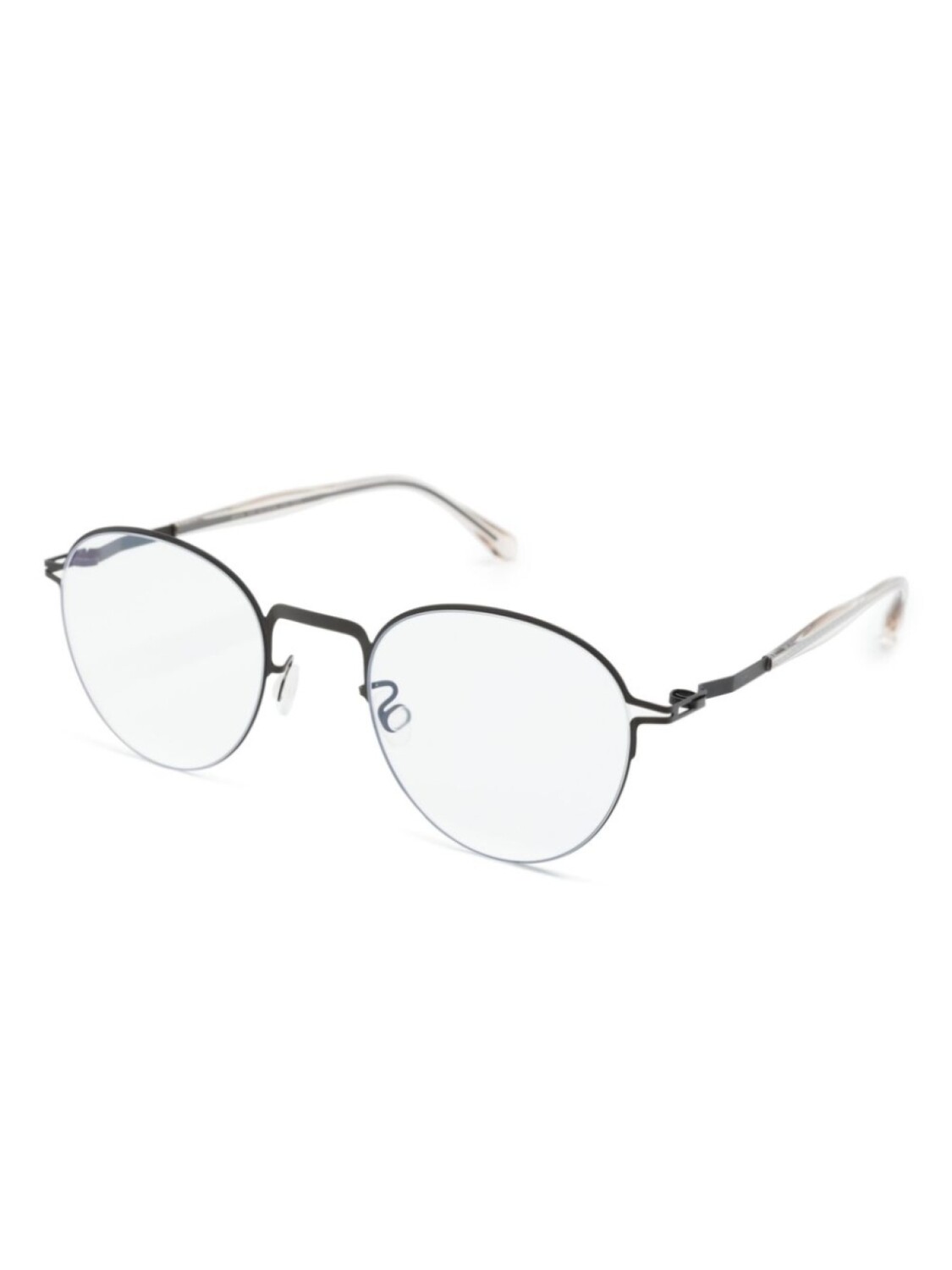 Черный, металл, круглая оправа, прозрачные линзы, металлическая верхняя планка, носоупоры, прямые дужки, дужки с закругленными концами, Обратите внимание, что на FARFETCH продаются оправы с линзами без диоптрий., В комплект входит защитный чехол для очков.