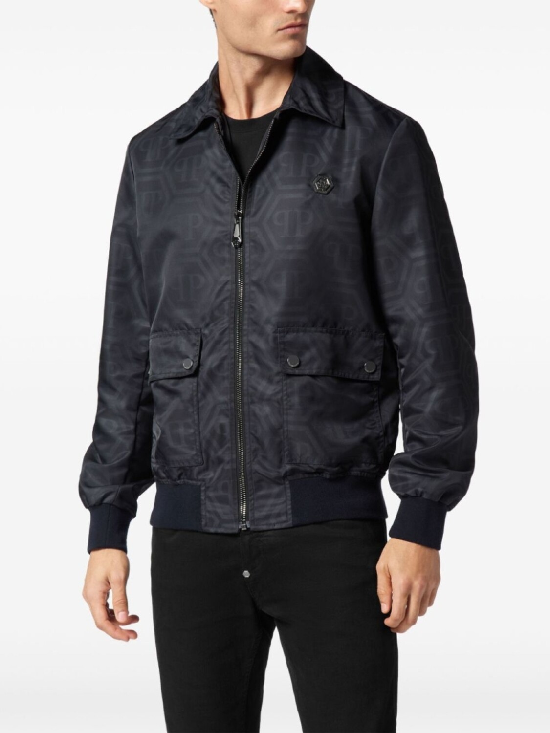 Куртка-бомбер с жаккардовым узором от Philipp Plein, синий