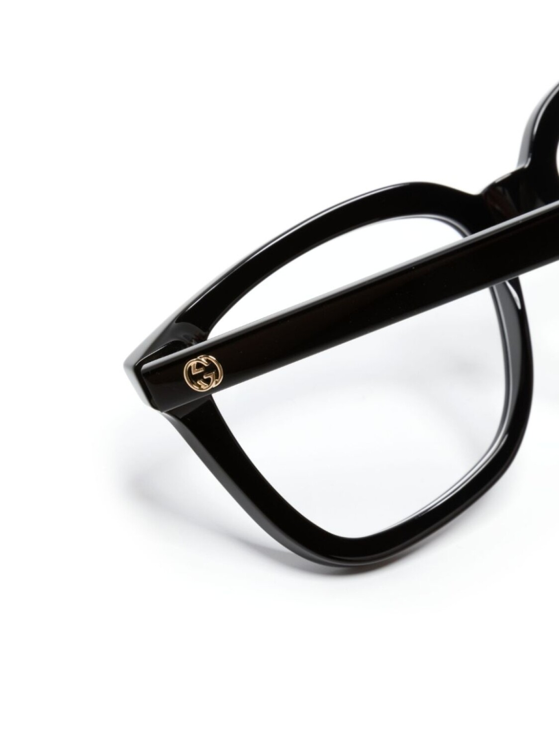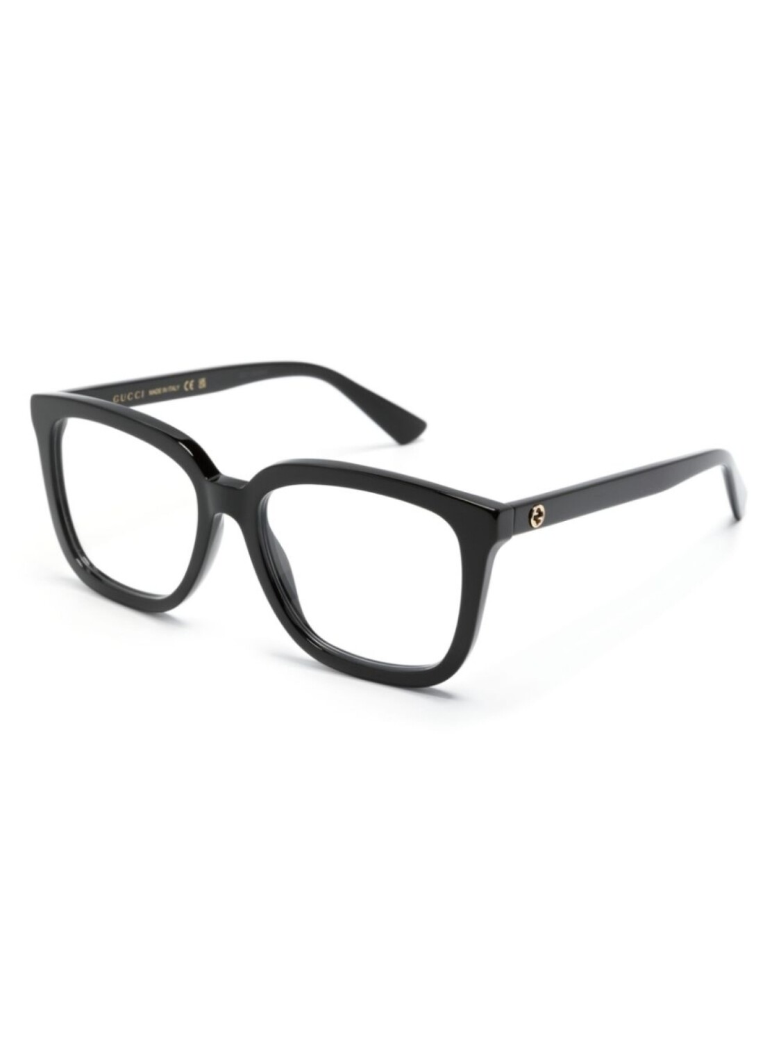 Черный, ацетат, прозрачные линзы, квадратная оправа, золотистый металлический логотип, прямые дужки и дужки с закругленными концами. Обратите внимание, что на FARFETCH продаются оправы с линзами без диоптрий. В комплект входит защитный чехол для очков.
