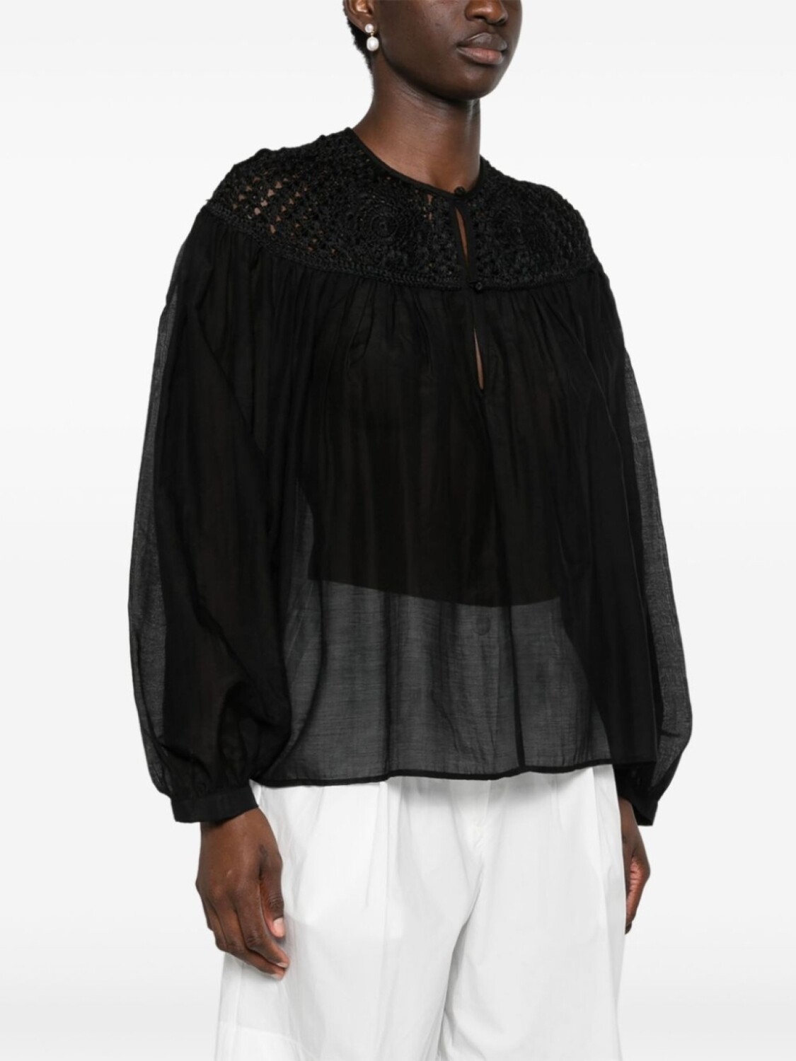 Forte Forte блузка со вставкой в технике кроше, черный