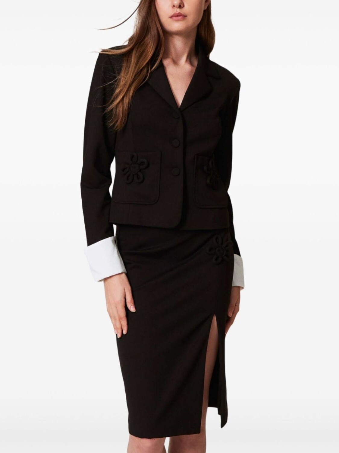 TWINSET юбка с цветочной аппликацией, черный