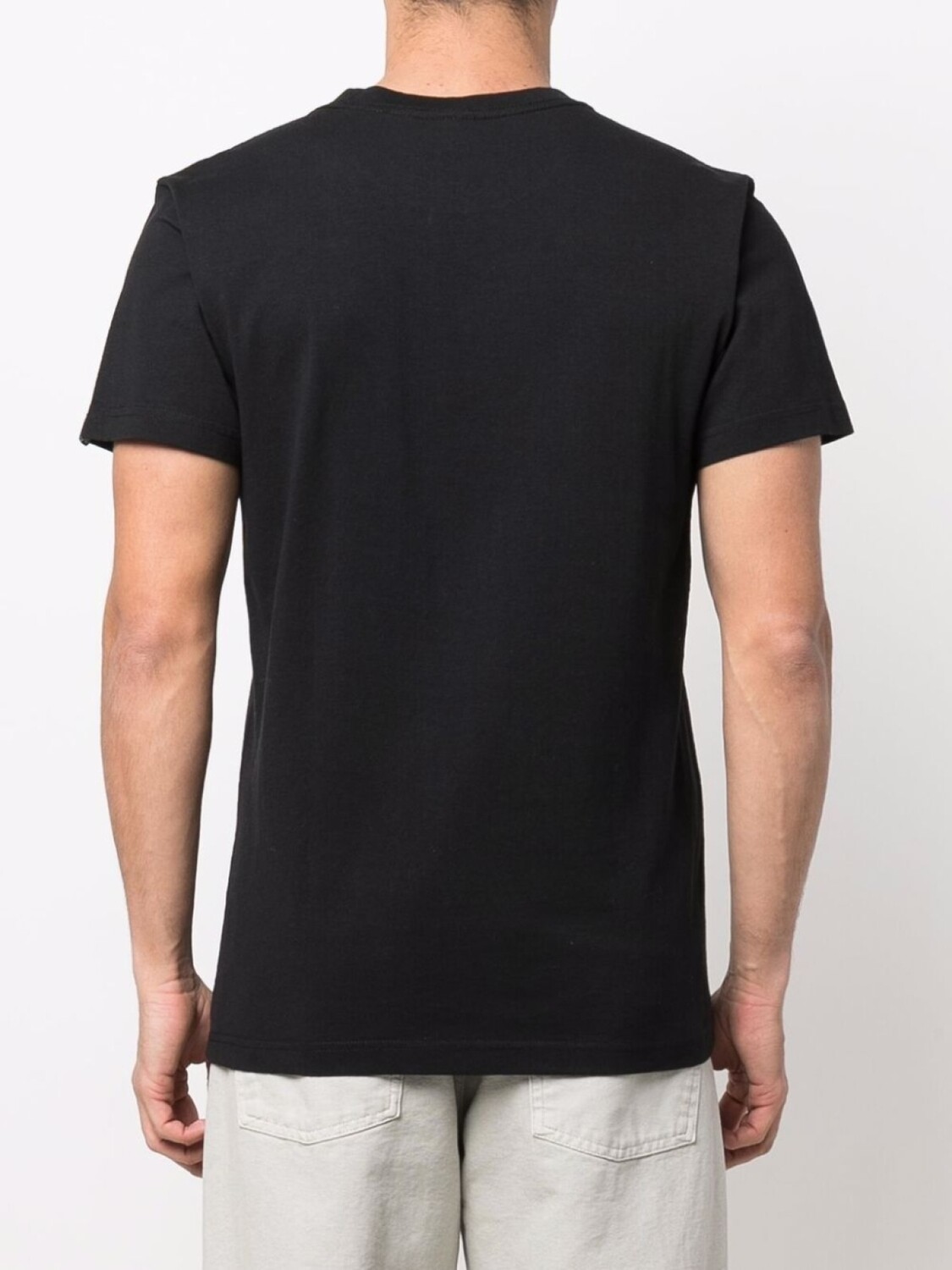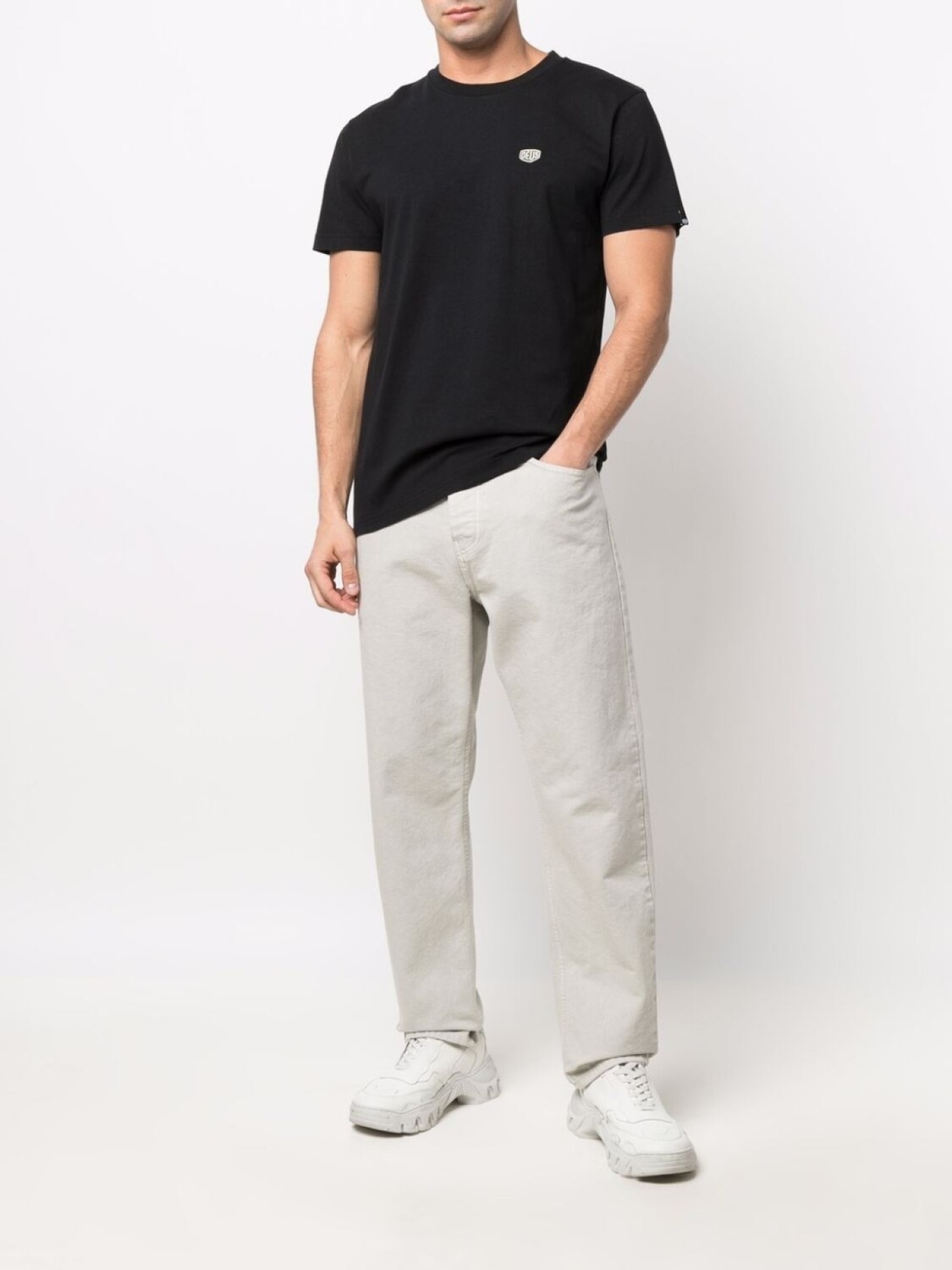 Нашивка с логотипом на груди, круглый вырез, короткие рукава и прямой подол. Цвет: черный.