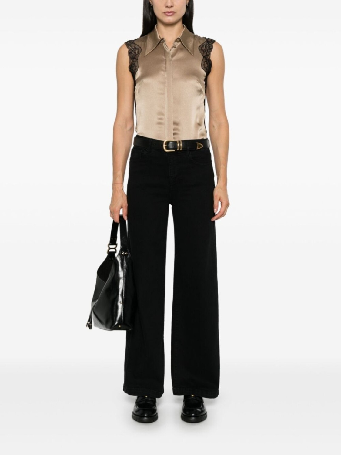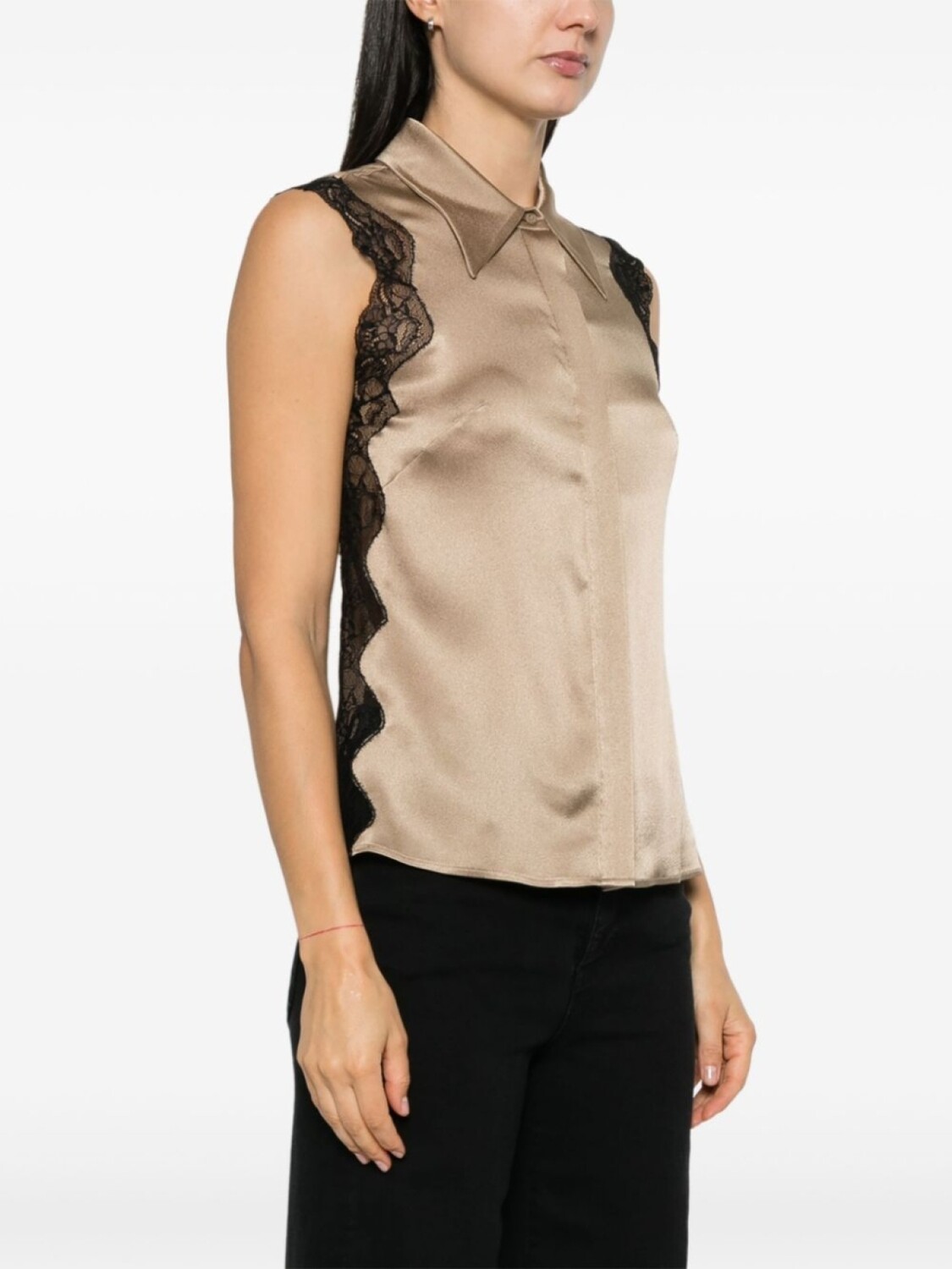 Alberta Ferretti рубашка с кружевной вставкой, золотой