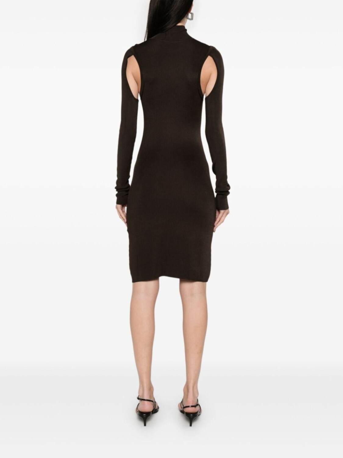 Коричневый, вырезные детали, высокий воротник, длинные рукава