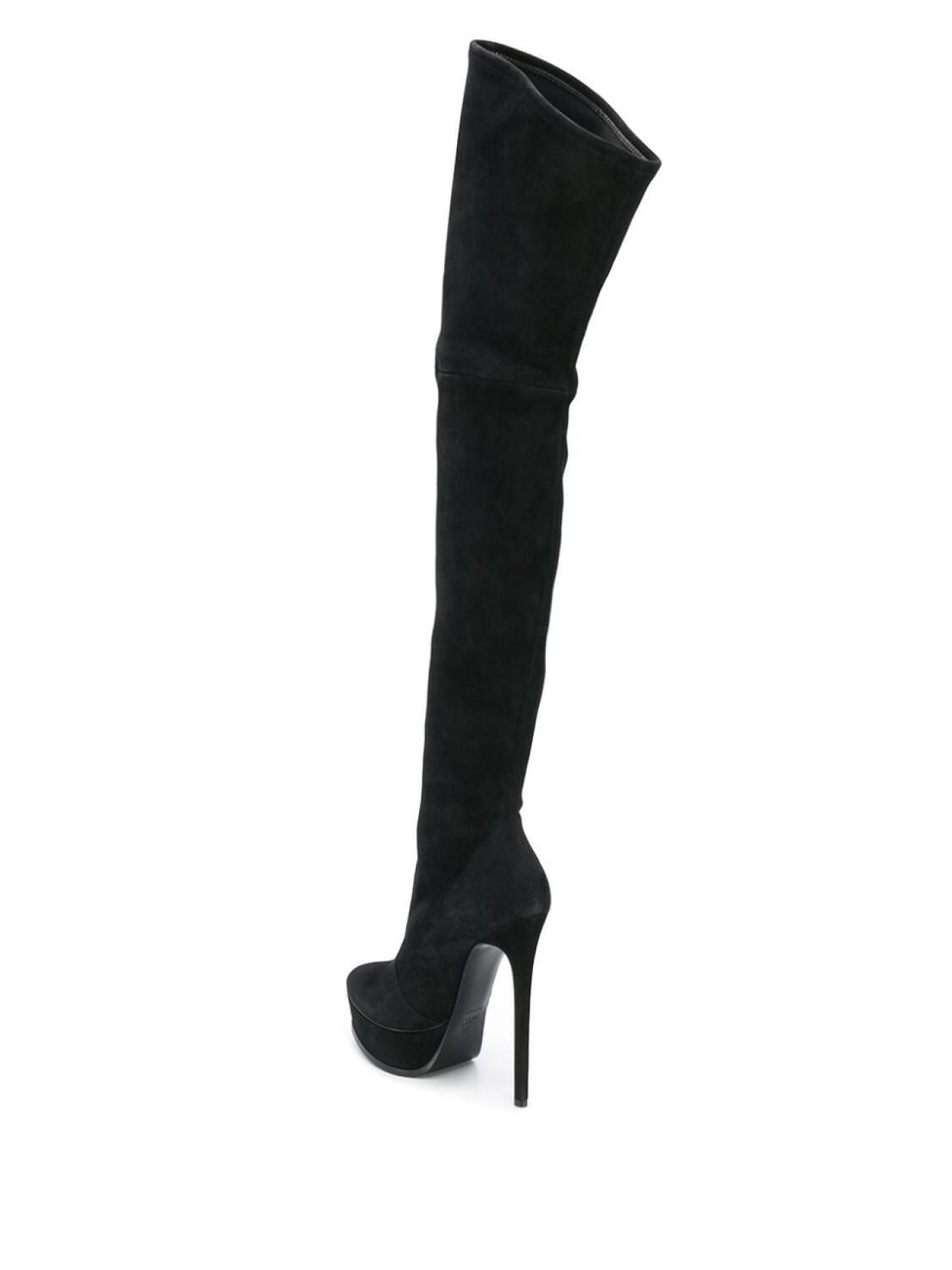 Ботфорты на шпильке от Casadei (Касадей). Высокая шпилька, подошва на платформе и длиннее локтя. Цвет: черный.