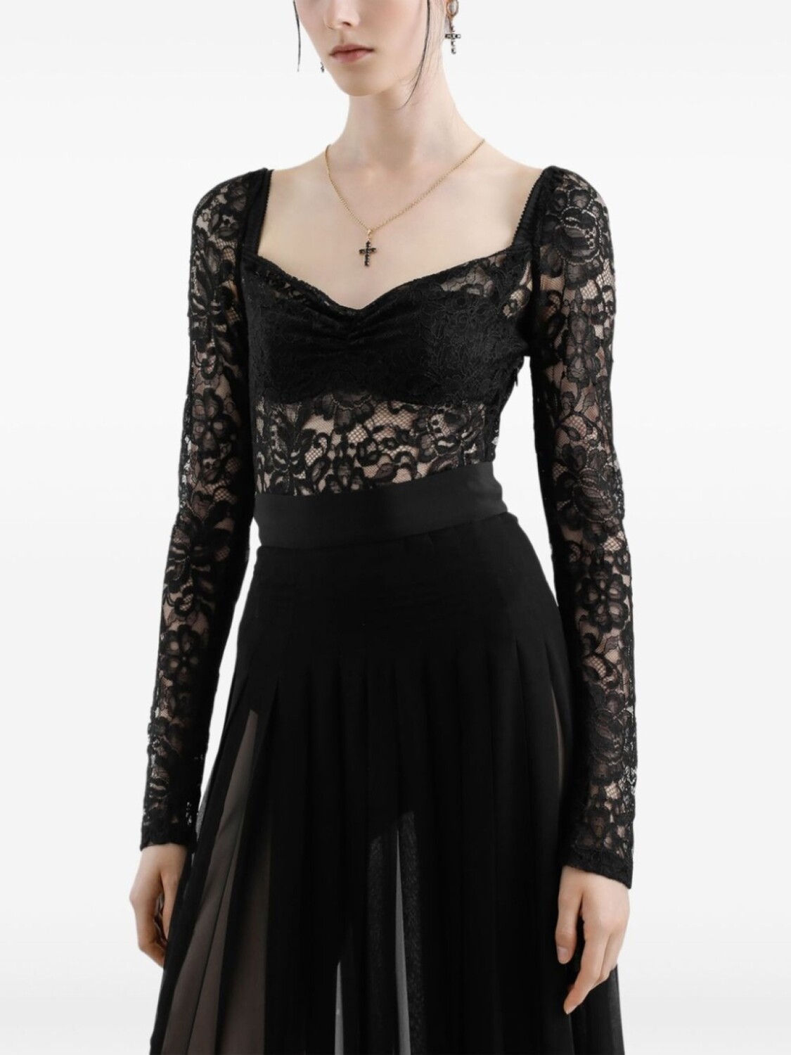 Топ Dolce & Gabbana с цветочным кружевом и вырезом в форме сердца, черный