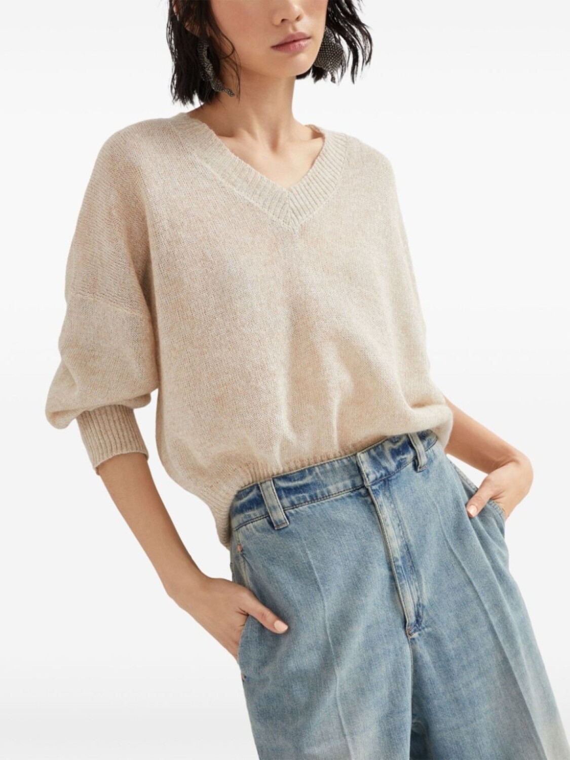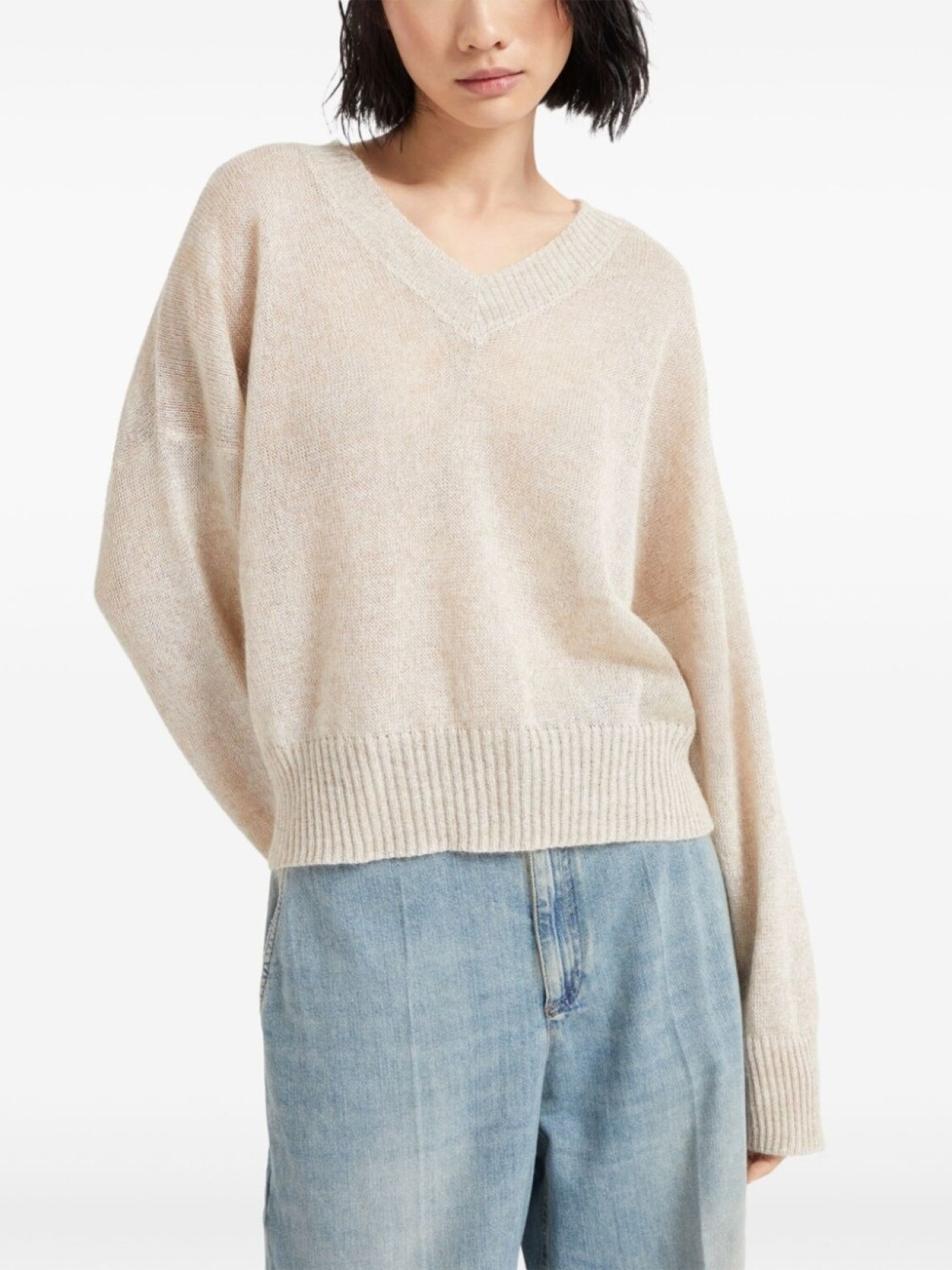 Джемпер Brunello Cucinelli с V-образным вырезом, нейтральный