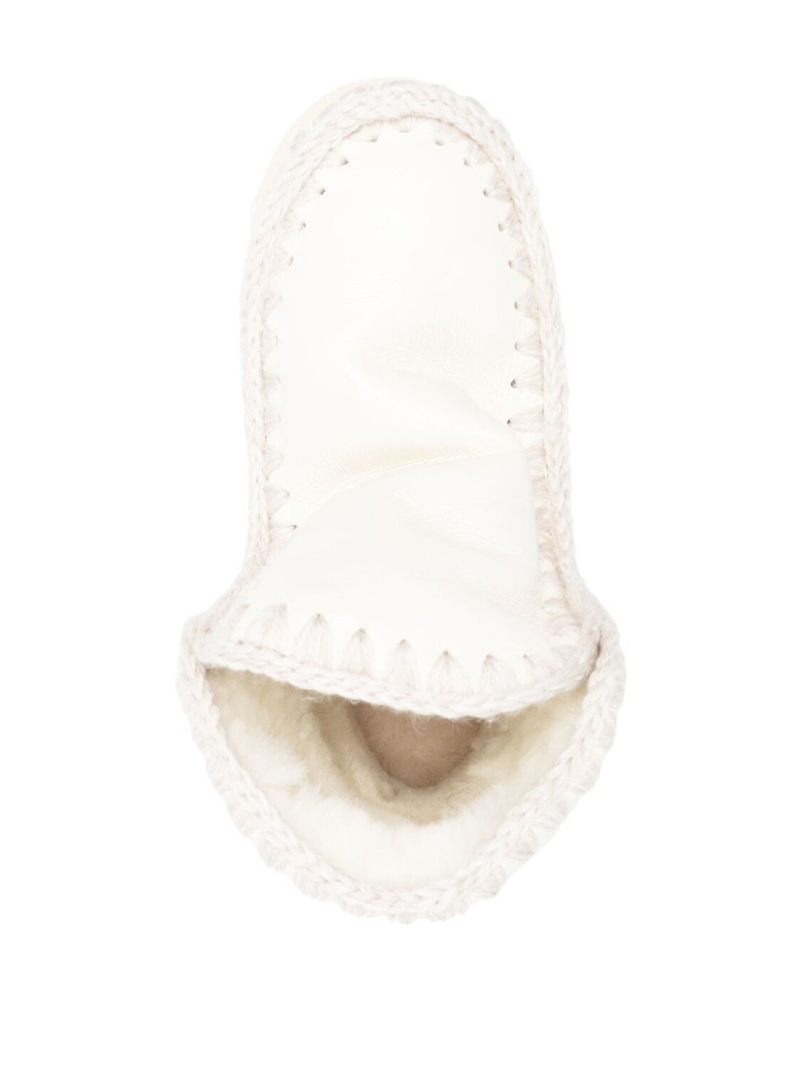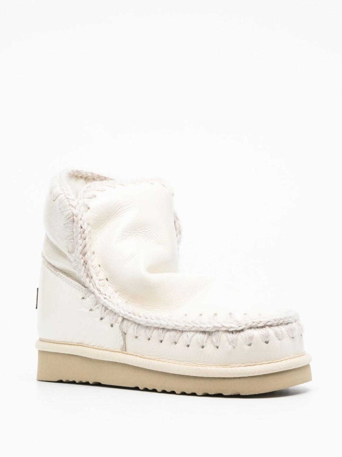 Кремовый, нашивка с логотипом сзади, закругленный носок, массивная резиновая подошва и модель без застежки.
