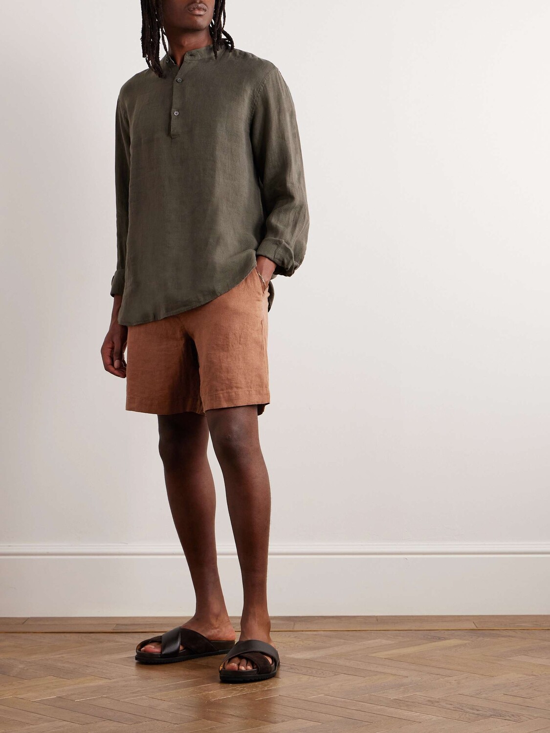 Прямые льняные шорты-бермуды Mr P., кирпич 10 220₽