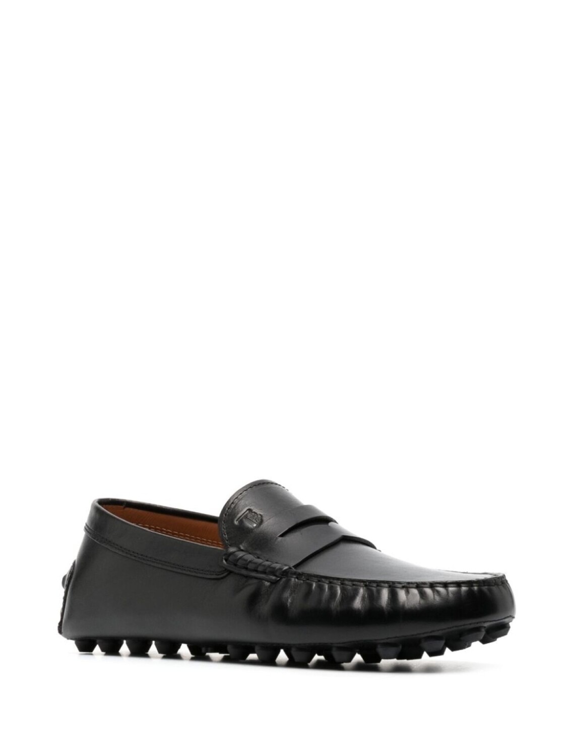 Черный, телячья кожа, прорези на язычке, тисненый логотип спереди, миндалевидный носок и подошва Gommino.