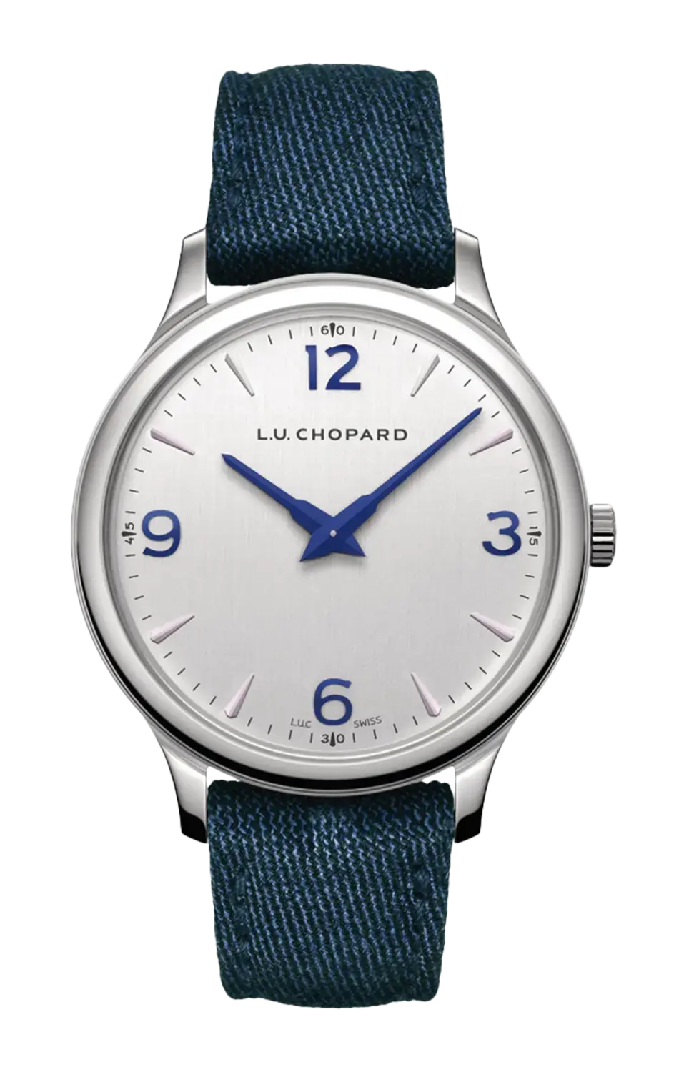 Бренд: Chopard Благодаря циферблату со стальным корпусом и отделкой из серебристого лавсана, крупным вороненым цифрам и синему ремешку из кашемировой ткани новая модель Luc XP воплощает непринужденную элегантность и сильную индивидуальность. Оснащенные оригинальным ультратонким автоматическим механизмом калибра Luc 96.53l, полностью разработанным и изготовленным в лабораториях мануфактуры Chopard во Флерье, а также вольфрамовым микроротором и двойной технологией с двумя барабанами, эти часы представляют собой идеальное сочетание современности и надежности.