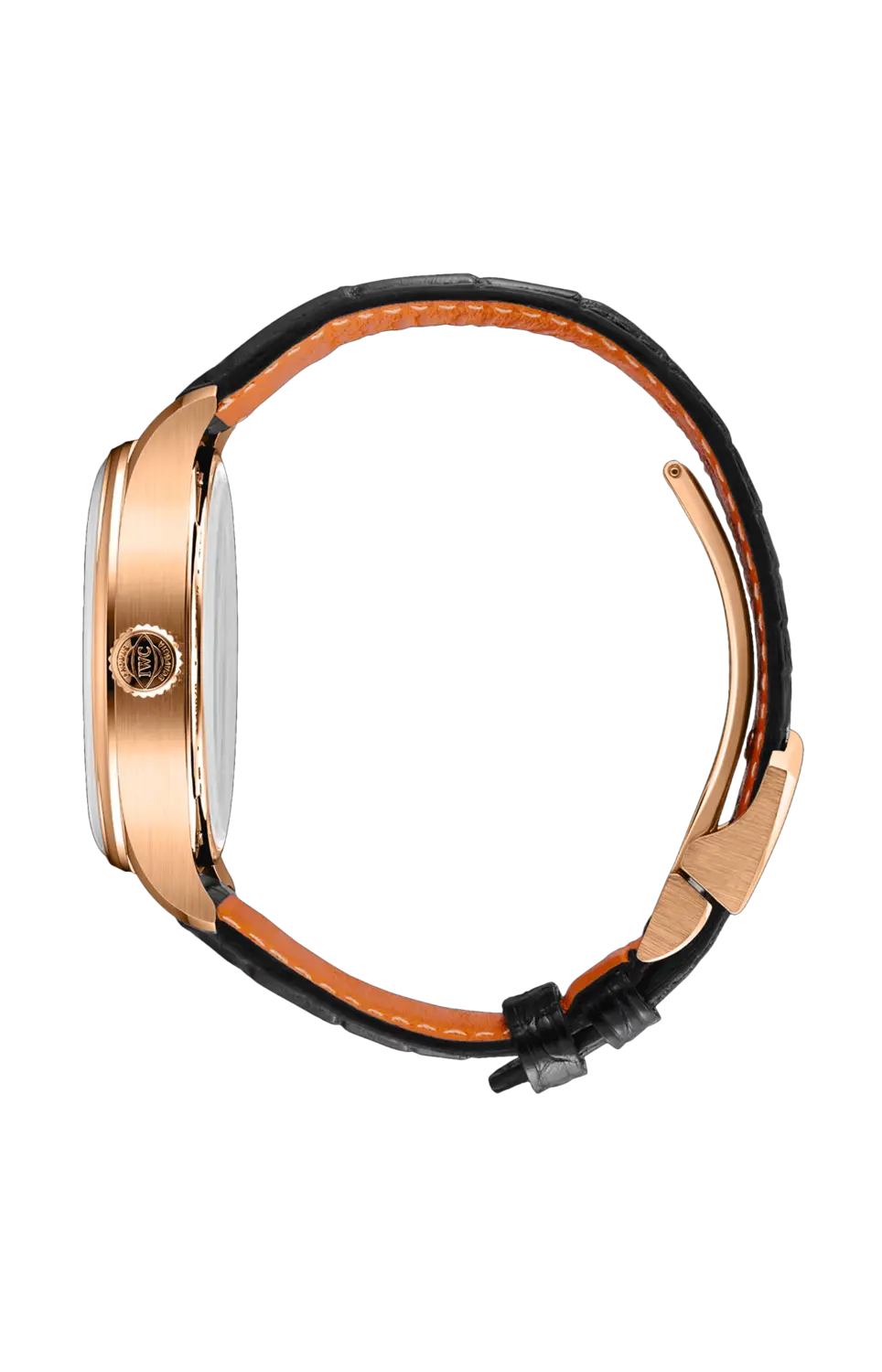 Корпус из розового золота 18 карат, автоматический завод, диаметр 42,4 мм, ремешок Santoni из черной кожи аллигатора, ширина ремешка 22,0 мм.