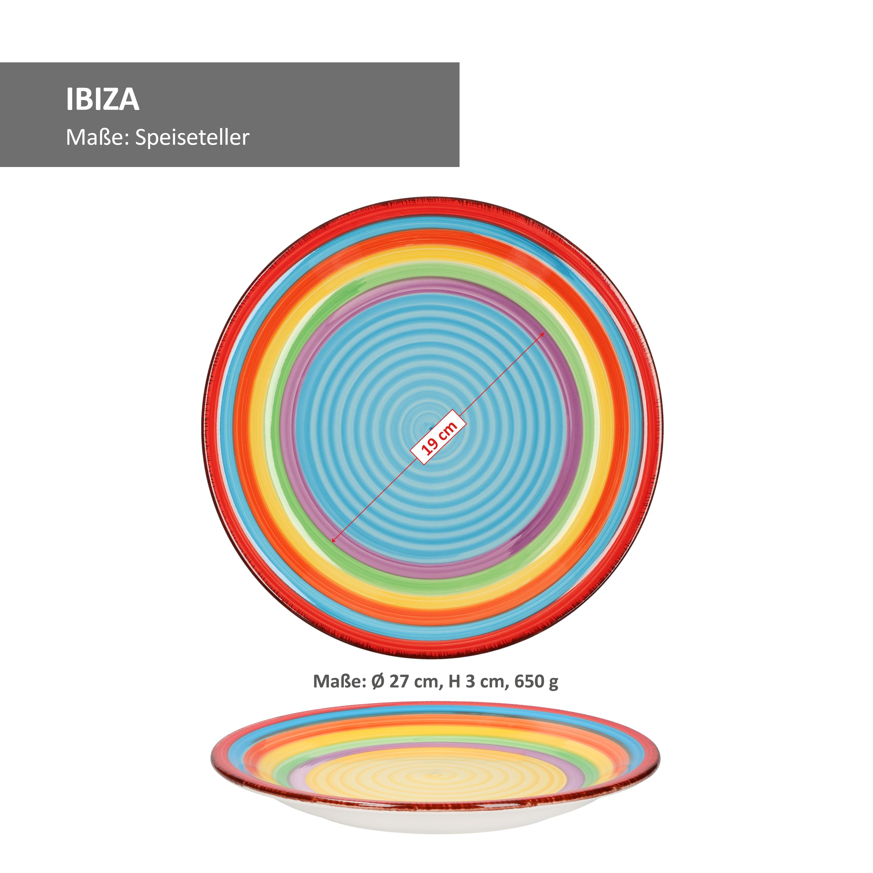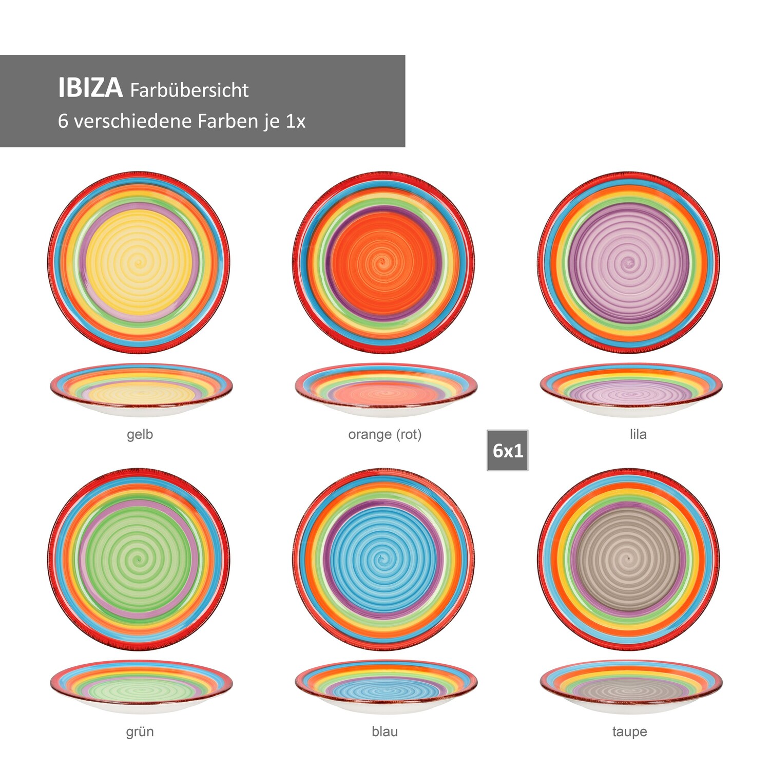 Разноцветные обеденные тарелки из коллекции Ibiza сразу привлекают внимание и являются идеальной базой для основного блюда. Этот красочный набор тарелок - незаменимая вещь для тех, кто ценит хорошее настроение во время трапезы, ведь вихреобразный декор в веселых, ярких цветах автоматически создает хорошую атмосферу за столом!