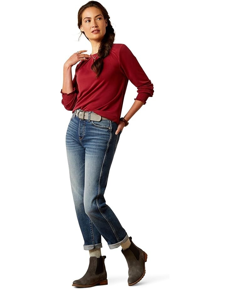 Поддерживайте свой непринужденный стиль в джинсах Ariat HR Bridle Straight. Застежка на пуговицы спереди и молния, классический дизайн с 5 карманами, высокая посадка и прямой крой штанины.