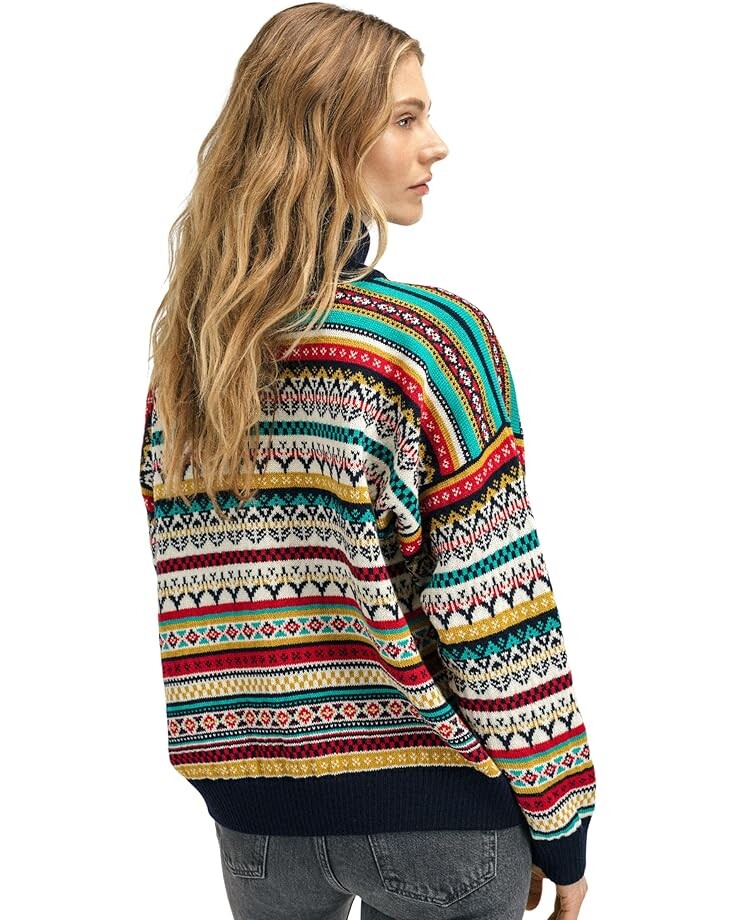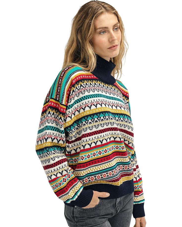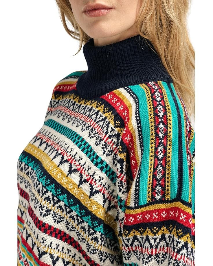 Излучайте очарование молодости в свитере Dale of Norway Utsira, который дарит необходимое количество комфорта и уюта. Этот свободный зимний свитер имеет высокий воротник для женщин, а шерсть сохраняет тепло и позволяет влаге выходить наружу. Он теплый, дышащий и идеально подходит как для дома, так и для улицы. Свитер-пуловер имеет стандартный крой, длинные рукава с ребристыми манжетами и ребристый подол. Он стильный, но также подходит для активного образа жизни; название Utsira навеяно островом, известным своим красочным уличным искусством, и оно прекрасно отображено на свитере.