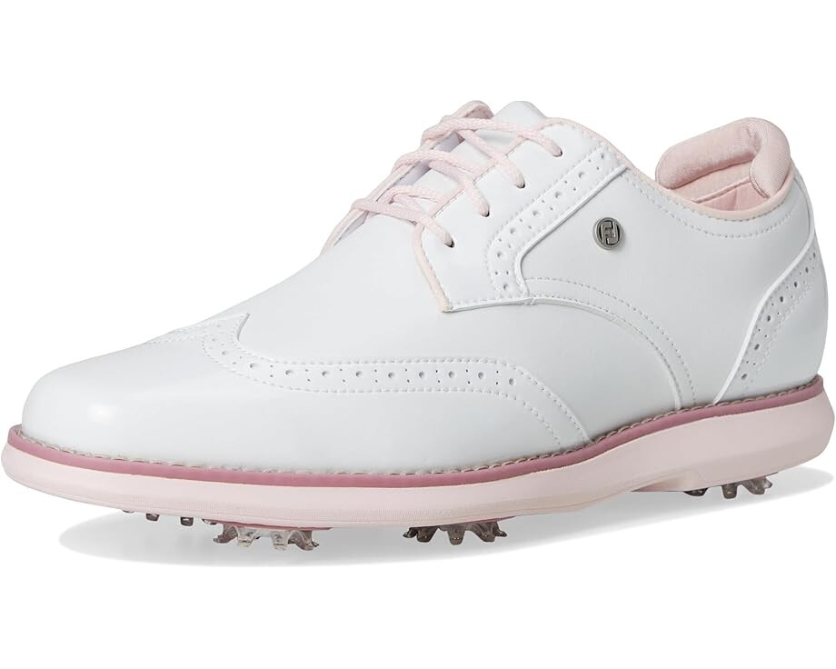 Кроссовки FootJoy Traditions Shield Tip Golf Shoes, цвет White/White/Pink