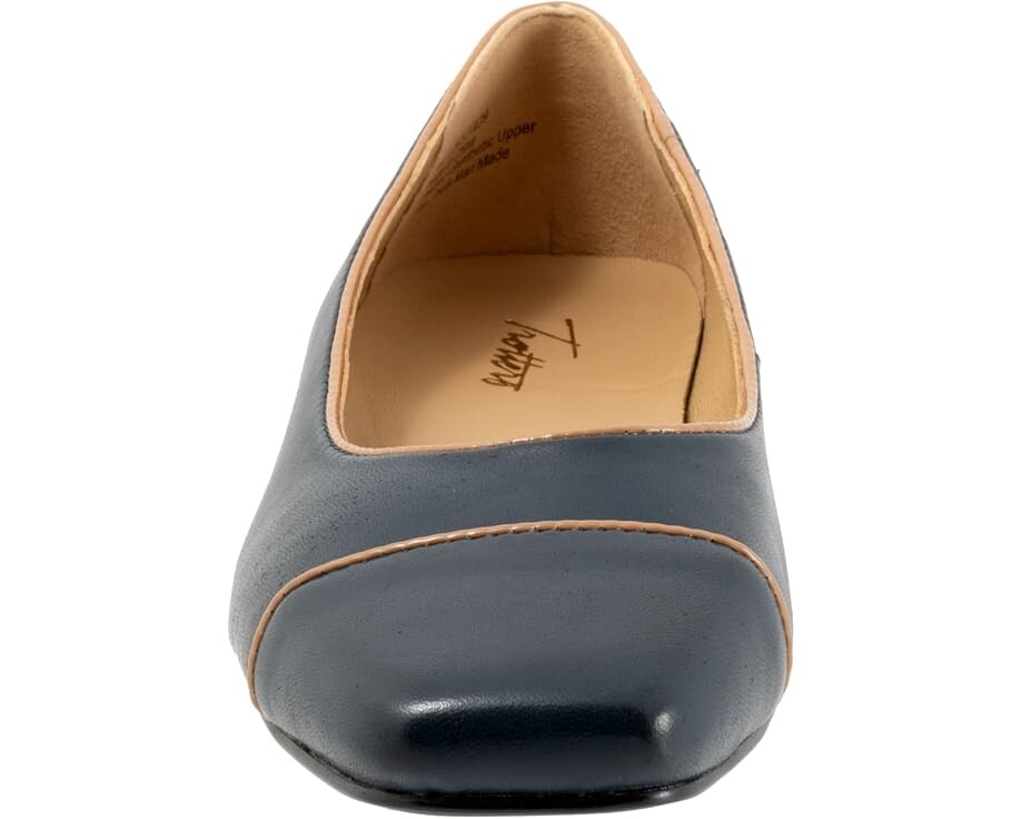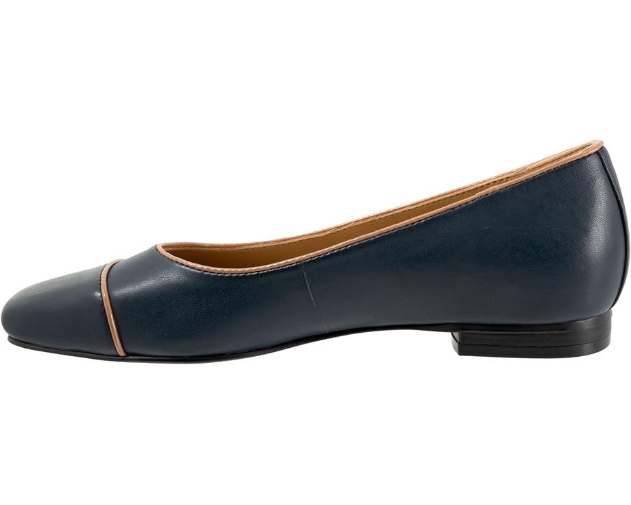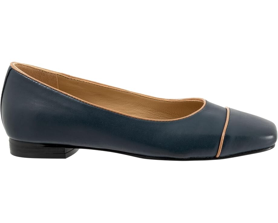 Отправьтесь в модный полет в супермодных и легких балетках Trotters Harbor. Обувь без застежек имеет кожаный верх с квадратным носком и изящной окантовкой, подчеркивающей стиль скиммера.