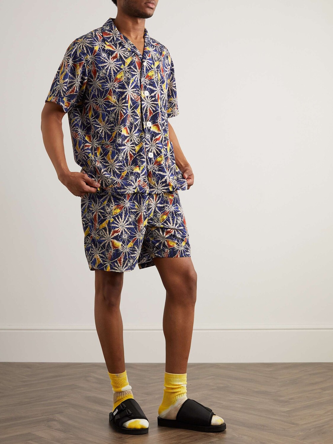 Прямые плавки-шорты средней длины с принтом BEAMS PLUS, синий