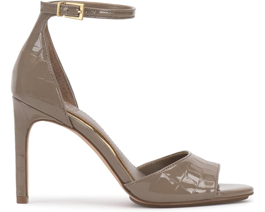 Сияйте изящной утонченностью в босоножках Vince Camuto Aliza. Эти двухкомпонентные босоножки имеют закругленный открытый носок и обтянутый каблук-шпильку. С верхом из лакированной кожи с крокодиловым принтом, металлизированной фольгой или гладкой мягкой лакированной кожи эти туфли на каблуке подойдут как для свидания за чашкой кофе, так и для коктейлей. Регулируемый ремешок на щиколотке с пряжкой и резиновая удобная вставка на подошве позволят вам держать их каждый раз, когда вы будете укладывать свою посадку.