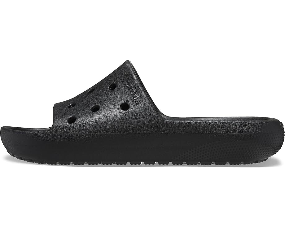 Удобные и простые в уходе, Crocs Kids Classic Slide V2 невероятно легкие. Они имеют открытую круглую форму носка, термопластичный верх EVA с отверстиями для воздухопроницаемости и простую модель надевания. Crocs изготовлены с термопластичной подкладкой EVA и глубокими чашеобразными стельками из пены Croslite для комфорта на 360 градусов.