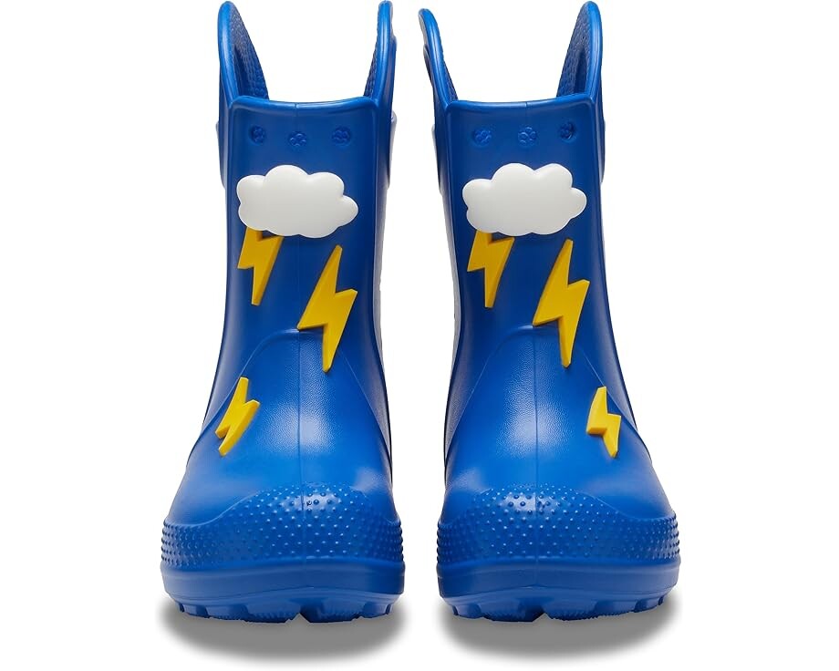 Ходите с уверенностью даже в самые дождливые дни в детских дождевых сапогах Crocs Kids Handle It Rain Boots с водонепроницаемой конструкцией, которая сохраняет ноги, прыгающие по лужам, в тепле и сухости, и увеличенными ручками, которые позволяют детям легко надевать и снимать их. Резиновые сапоги высотой до икры изготовлены из этиленвинилацетатного верха с мягкими облачными мотивами и этиленвинилацетатной стелькой.