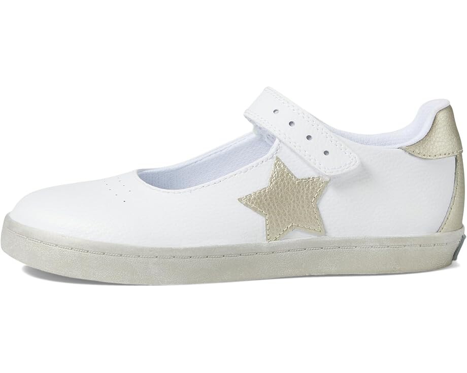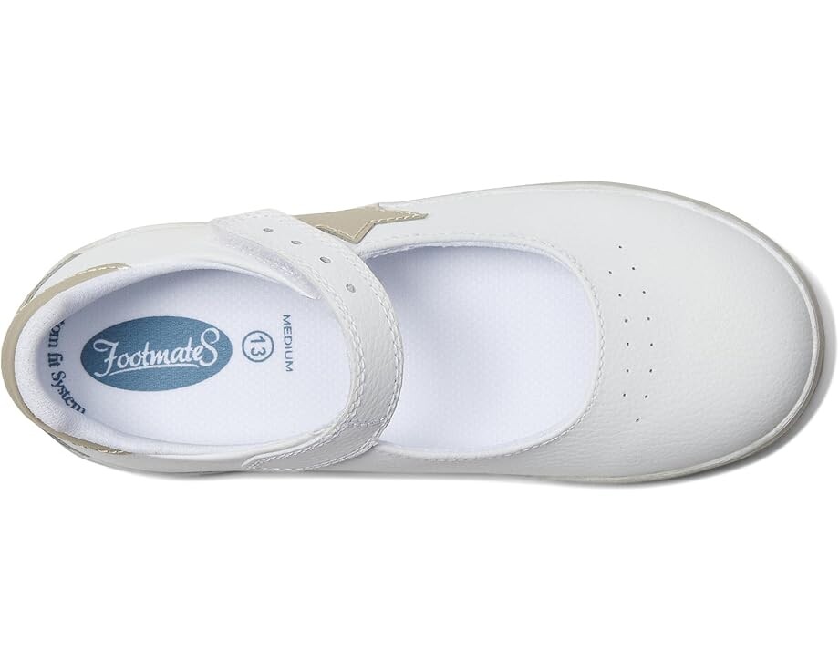 Комфорт и стиль идеально гармонируют с кроссовками FootMates Stella-Leather Mary-Jane. Эти красивые кроссовки имеют верх из высококачественной кожи с декоративной аппликацией в виде звезды, акценты на пятке, ремешок и перфорацию на передней части стопы, а также антикварный профиль подошвы. Идеально подходит для любого случая!