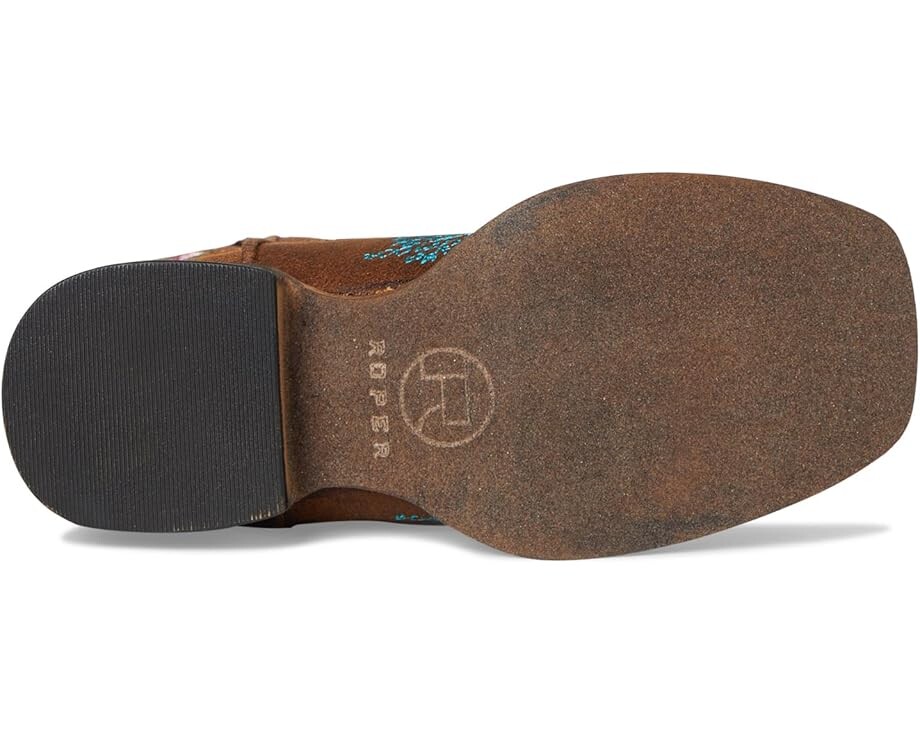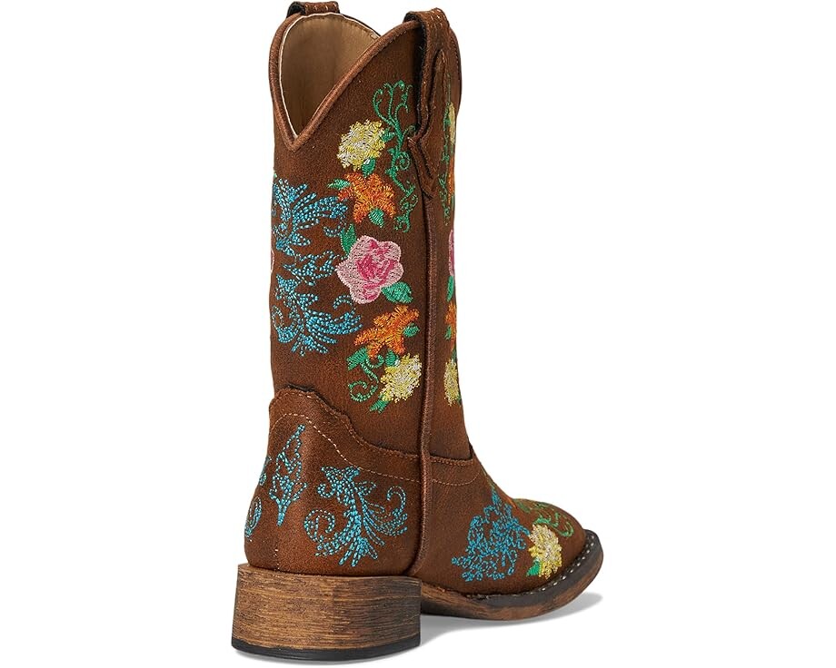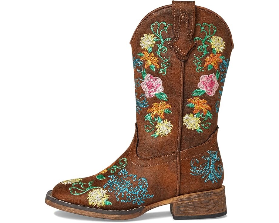 Красочная цветочная вышивка подчеркивает вневременной вид ботинок Roper Kids Bailey Floral Western Boots. Обувь без застежек имеет синтетическую конструкцию верха с квадратным носком и наборным блочным каблуком.