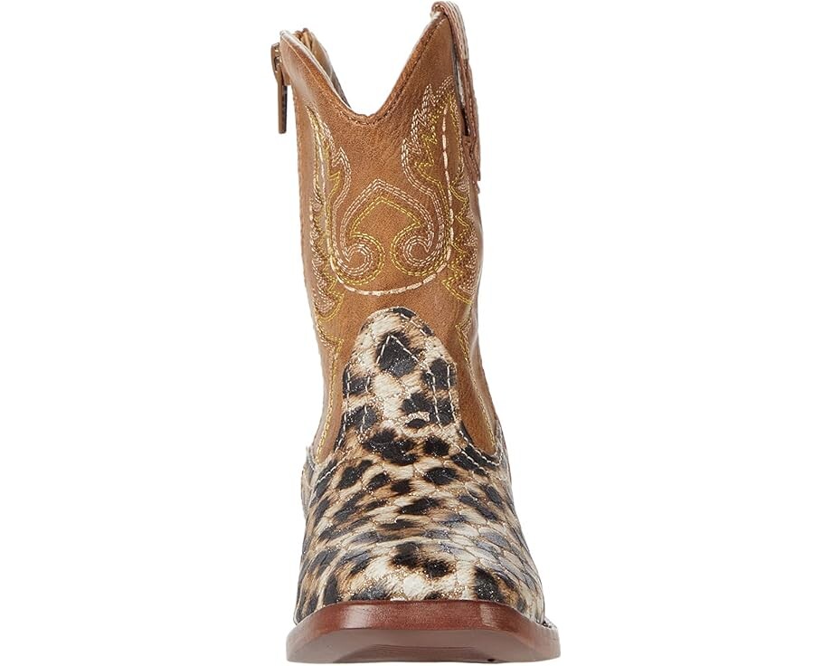 Ваша маленькая ковбойша будет шагать в разумном стиле с современными ботинками Roper Kids Cowbaby Glitter Leopard. Эти искусственные ботинки имеют цветное голенище с красочной строчкой на голенище.