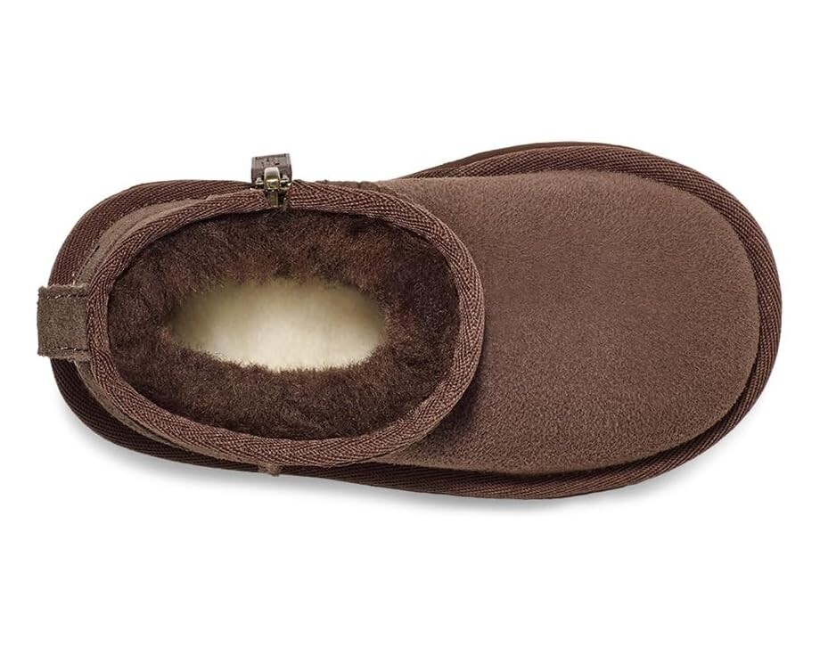 Сапоги UGG Kids Classic Ultra Mini имеют более низкую высоту голенища, что обеспечивает легкость надевания и повышенную универсальность. Эти ботинки, предварительно обработанные для сохранения лучшего внешнего вида в течение длительного времени, разработаны с такими особенностями, как фирменная подкладка из овчины, сверхмягкая стелька из смеси шерсти UGGplush и TENCEL Lyocell, а также гибкая, легкая подошва EVA, созданная для игры в течение всего дня. Верх из овчины Twinface толщиной 17 мм сохраняет ноги вашего ребенка в тепле и уюте. Пусть ваш ребенок бежит и играет, чувствуя себя комфортно и с поддержкой в этих теплых ботинках.