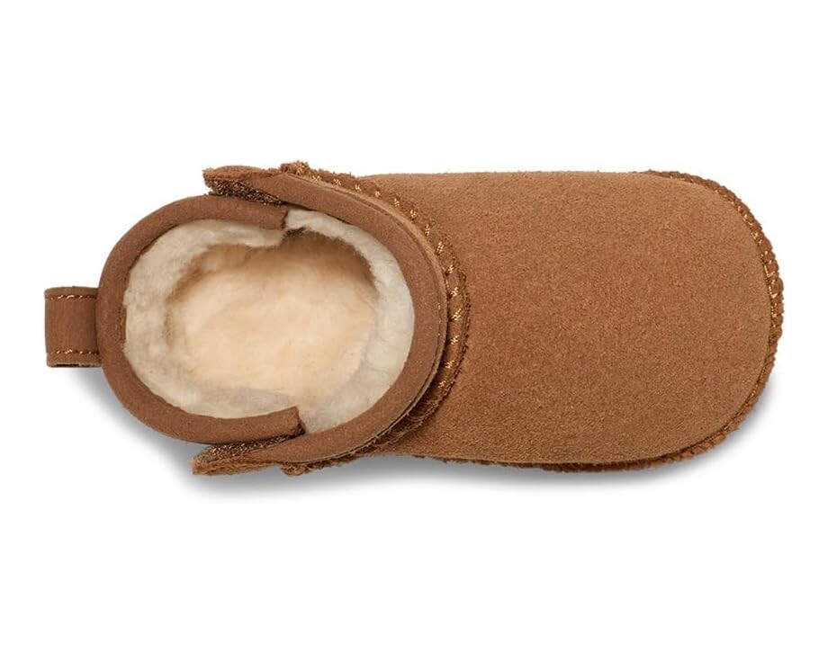 Мини-стиль, мега-комфорт! UGG Kids Baby Classic Ultra Mini привносят культовый стиль и непревзойденный уют для маленьких ножек. Благодаря верху из высококачественной замши, стельке из переработанной шерсти UGGplush и подкладке из полиэстера, эти мини-сапожки предлагают фирменное амортизирующее ощущение, которым славится UGG. Конструкция высотой до щиколотки и резиновая подошва обеспечивают устойчивость, а удобная застежка на липучке позволяет легко надевать и снимать изделие.