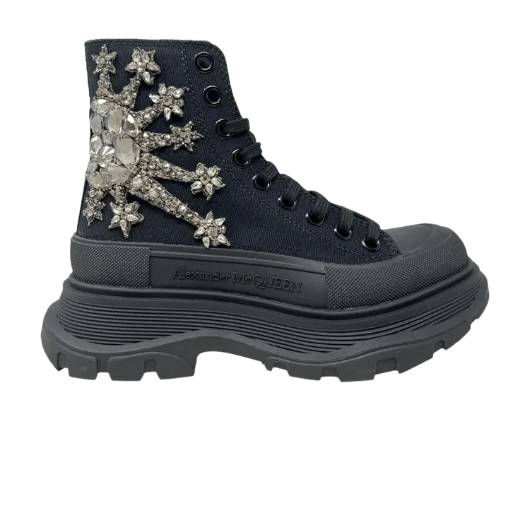 Ботинки Alexander McQueen Wmns Embellished Tread Slick Boot Black Silver, черный