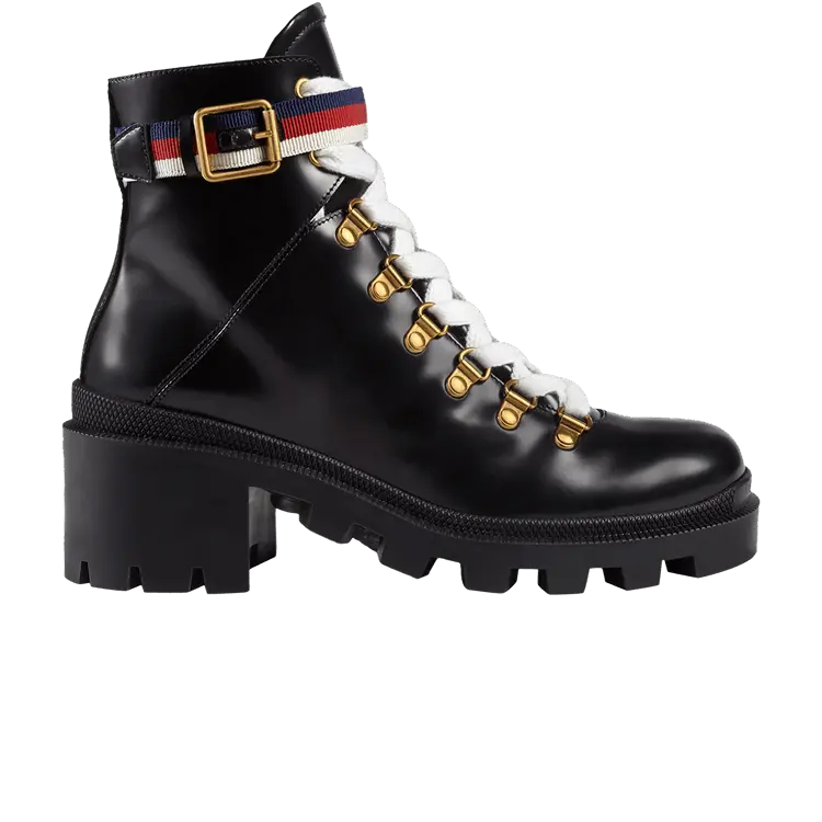 Ботинки Gucci Wmns Sylvie Web 55mm Ankle Boot Black Mystic White Red, черный
