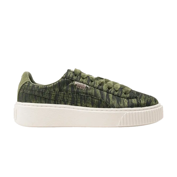 Кроссовки Puma Wmns Basket Platform Velvet Rope - Olive Night, зеленый