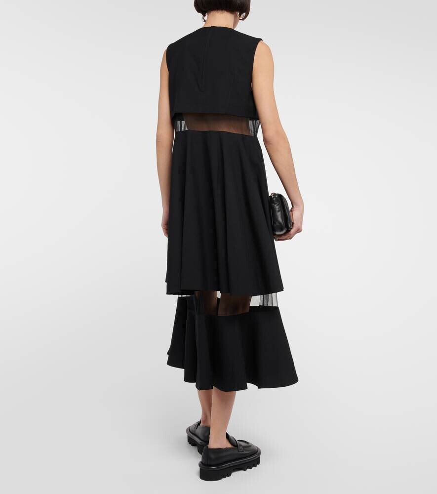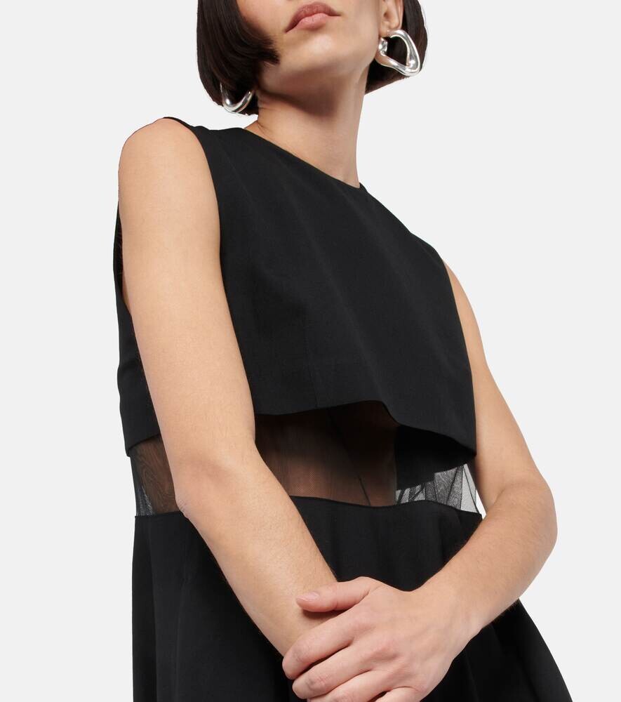 Платье миди из шерсти с сетчатой отделкой NOIR KEI NINOMIYA, черный
