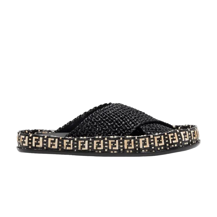 Кроссовки Fendi Wmns Raffia Slides Black Natural, черный
