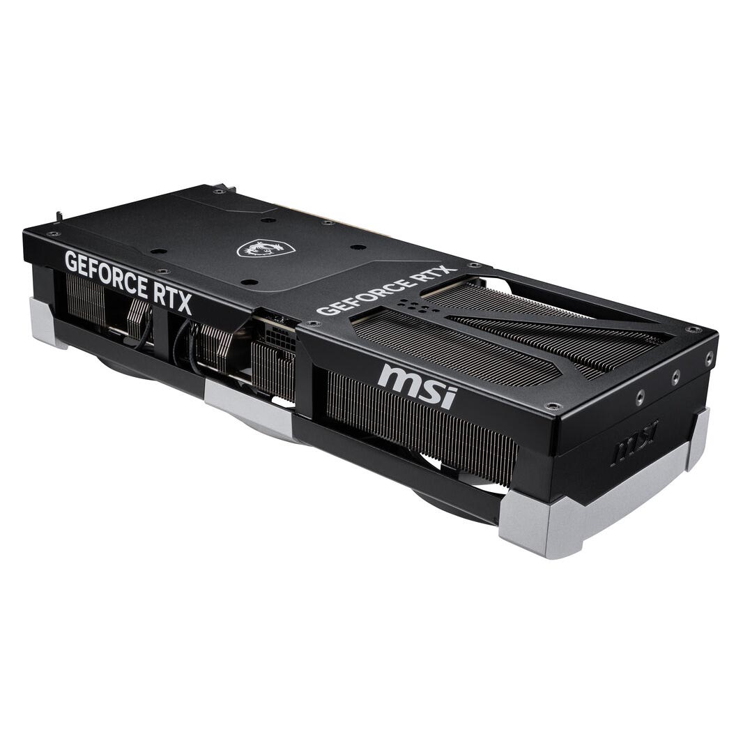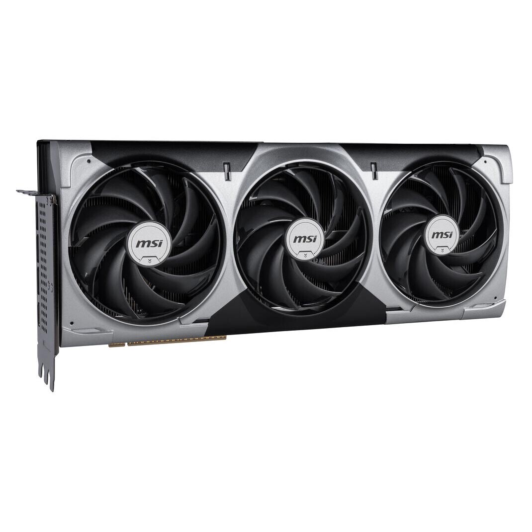 MSI GeForce RTX 5090 VENTUS 3X OC представляет собой флагманскую видеокарту 2025 года с графическим чипом RTX 5090 от Nvidia, которая получила 32 Гб видеопамяти типа GDDR7 и шину памяти в 512 бит. Данная модель получила продуманную систему охлаждения из трех кулеров и медной пластины с никелевым покрытием, что гарантирует равномерное и эффективное рассеивание тепла. Одной из ключевых особенностей новой линейки RTX 50 является поддержка технологии DLSS 4 и генерации дополнительных кадров, что позволяет значительно увеличить производительность в играх. Для питания модель использует разъем 16 пин, а рекомендуемая мощность блока питания составляет 1000 Вт.