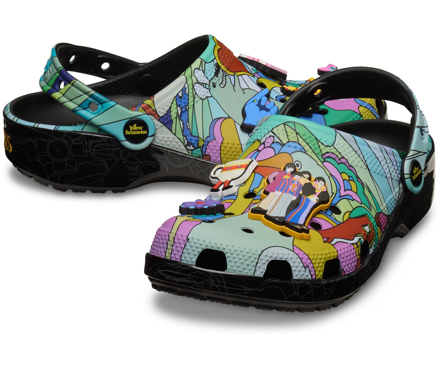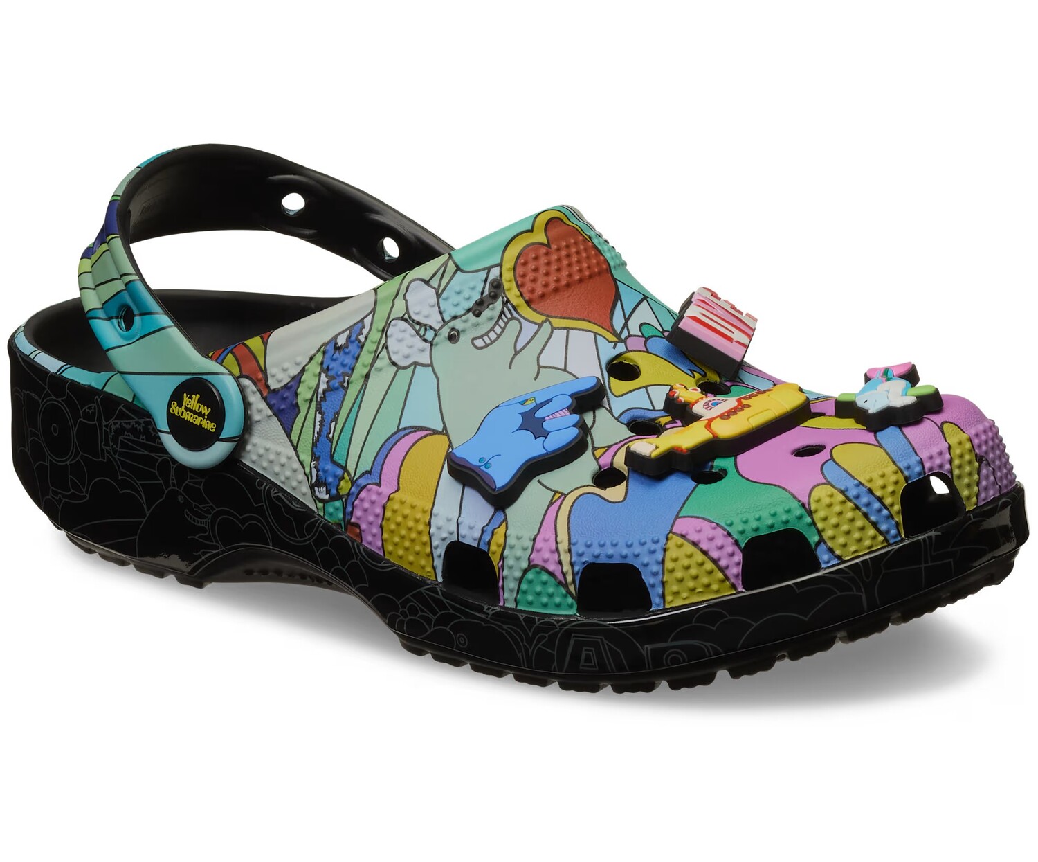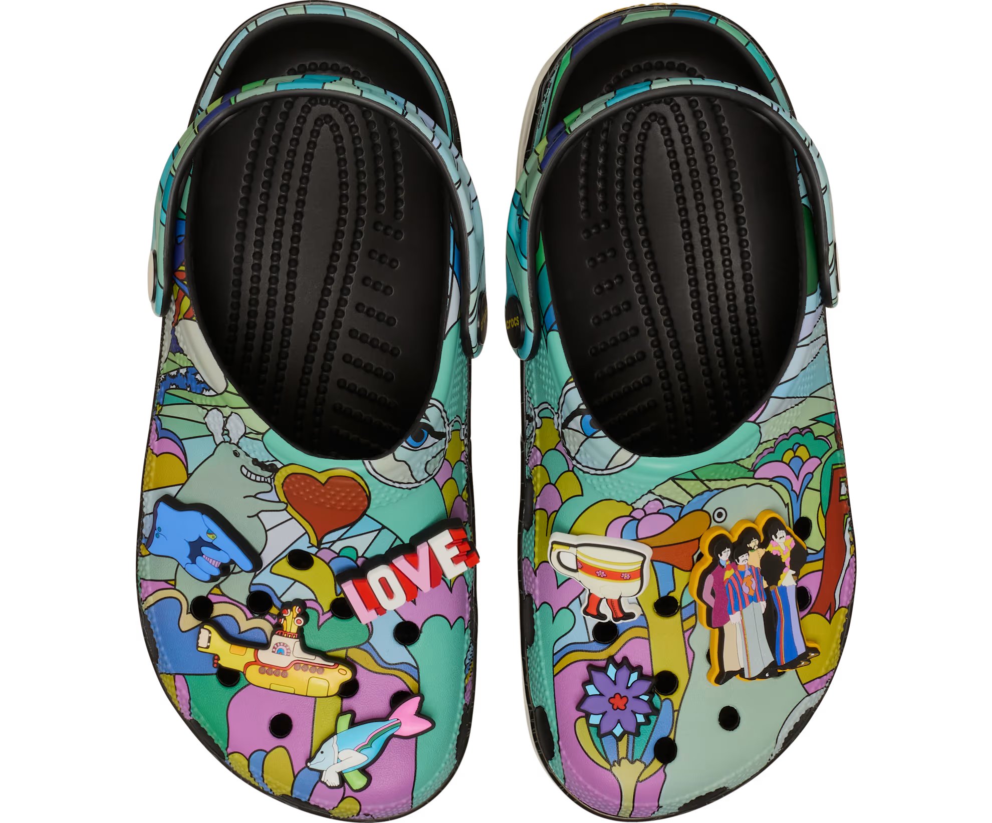 Все, что тебе нужно, - это любовь... и Beatles Classic Platform Clog. Верх с психоделическим принтом позволит вам жить в цвете. А море отверстий делает их идеальными для эксклюзивных брелоков Jibbitz Charms, вдохновленных фильмом Yellow Submarine, и любых дополнительных элементов, которые вы захотите добавить.