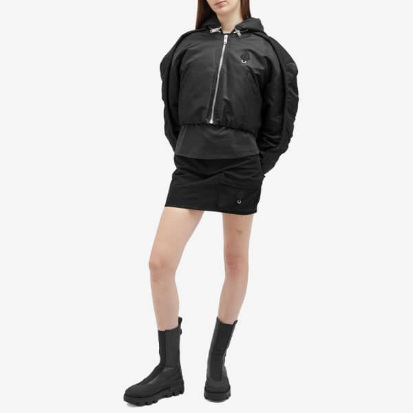 Сотрудничество Willow Smith и Genius стало домом для вещей, которые легко переходят от похода к городу, объединяя как утилитарность, так и высокую моду с роскошным качеством Moncler. Эта мини-юбка принимает утилитарный стиль с передним накладным карманом и прочной хлопковой парусиной. Фирменная нашивка с логотипом Moncler была переработана в полностью черном цвете с минималистской буквой «W» и серебристым металлическим кольцом под ней. Кроме того, линия талии отделана серебристой молнией для дополнительной остроты.