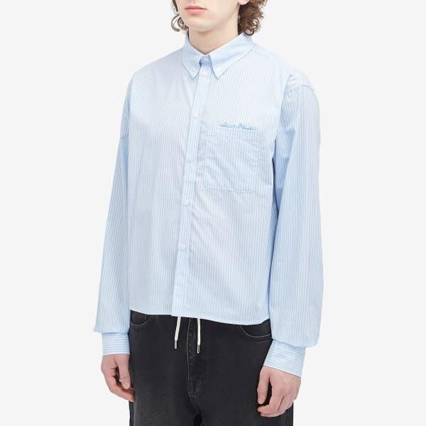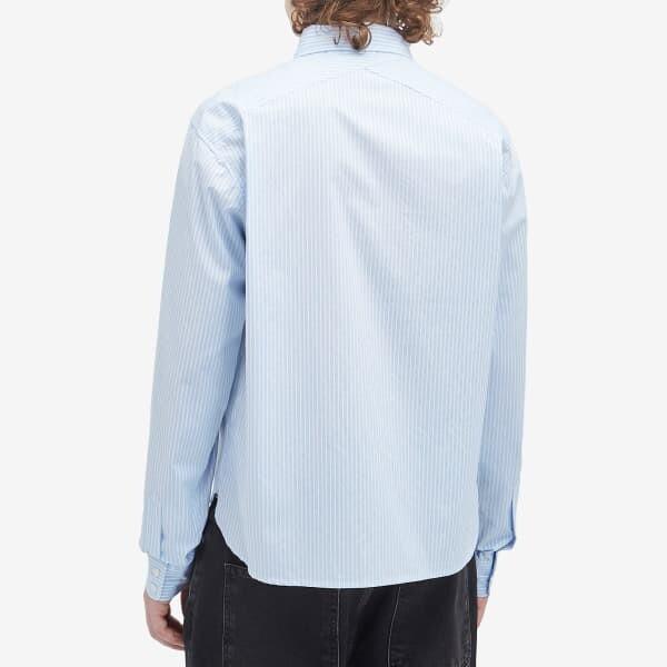Сочетая традиции с современными кодами дизайна, рубашка в полоску Oxford about:blank источает непринужденный шик. Полоски из пряжи, окрашенные в пряже, покрывают изделие, а пуговицы на воротнике и манжетах добавляют индивидуальный штрих. В завершение, вышитый логотип бренда находится на большом нагрудном кармане.