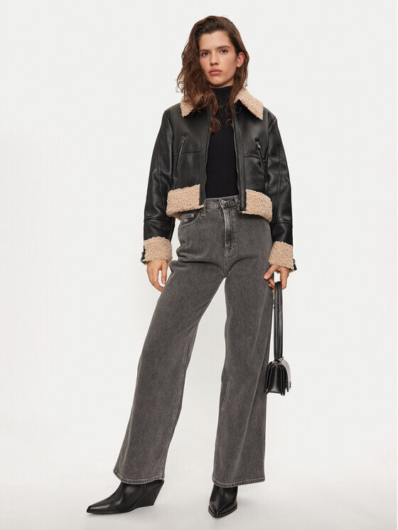 Куртка из искусственной кожи, стандартного кроя Sisley, черный