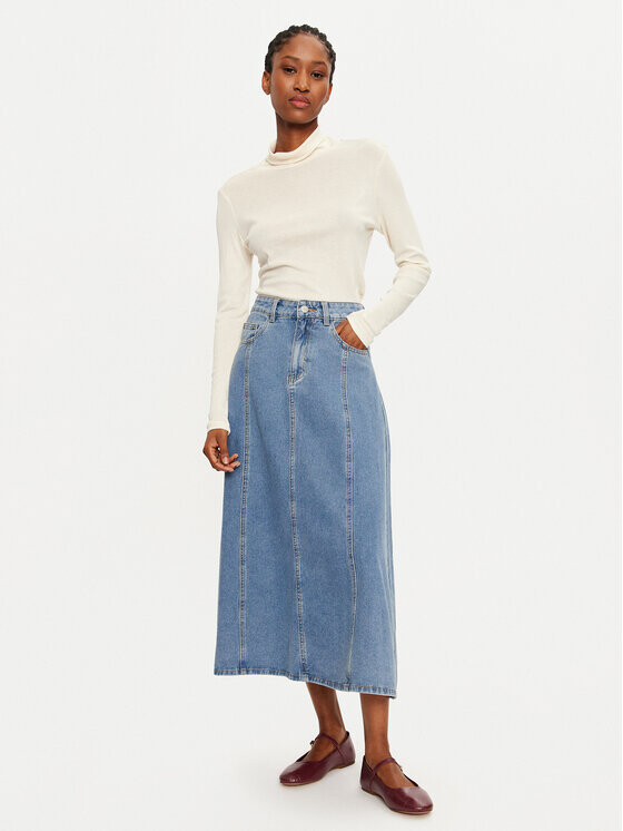 Свитер с высоким воротником приталенного кроя Vila, бежевый
