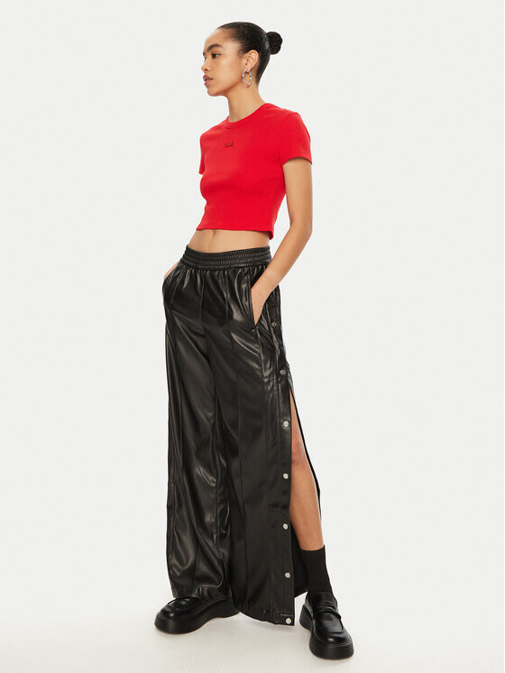 Брюки из искусственной кожи, прямые брюки Hugo, черный