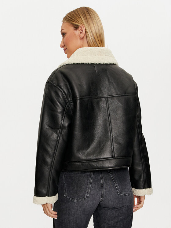 Куртка из искусственной кожи, стандартного кроя Pieces, черный