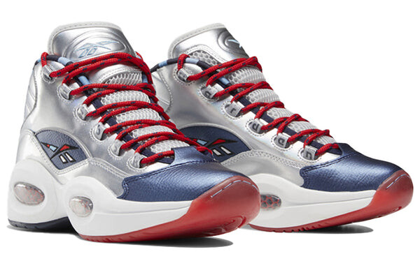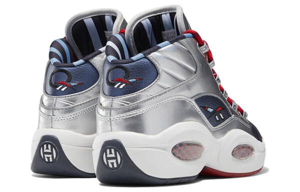 Бренд: Reebok Цвет: серебряный Следующий релиз в сотрудничестве James Harden x Reebok заставит всех спешить заполучить свою пару! Question Mid 'Cross Over' черпает вдохновение из одной из самых знаковых баскетбольных кроссовок всех времен, Reebok Question. Это продолжение чрезвычайно популярной расцветки 'OG Meets OG' берет дизайнерские намеки из оригинала, выполненного в металлическом серебристом цвете с синими кожаными деталями. Медиальные люверсы составляют 'Harden', а личный логотип спортсмена отмечен на пятке. Как всегда, эта обувь создана для игры на площадке с изогнутой резиновой подошвой, которая обеспечивает превосходное сцепление.