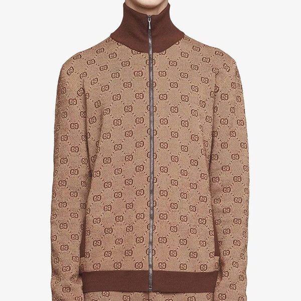 Куртка jacquard knit pilot jacket coat male brown Gucci, коричневый 193 031₽
