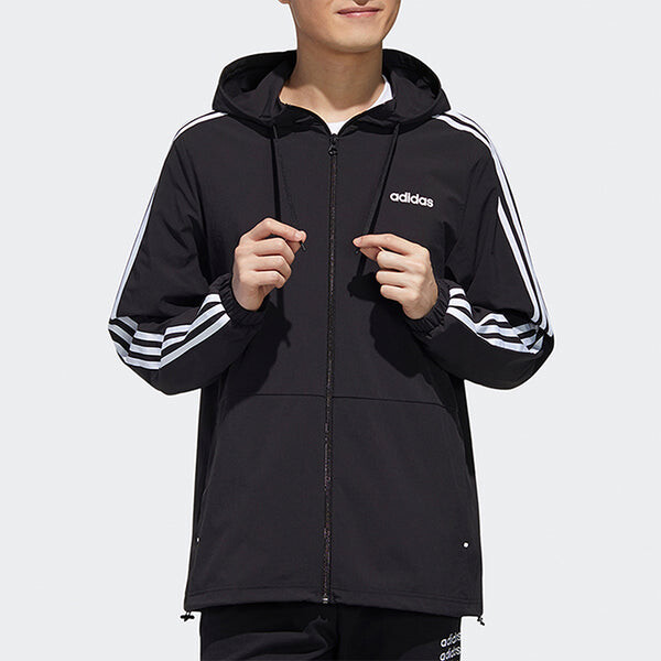 Куртка neo m essential 3-stripes windbreaker - black Adidas, черный