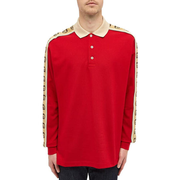 Рубашка поло long sleeve polo with interlocking g stripe 'red' Gucci, красный 121 582₽