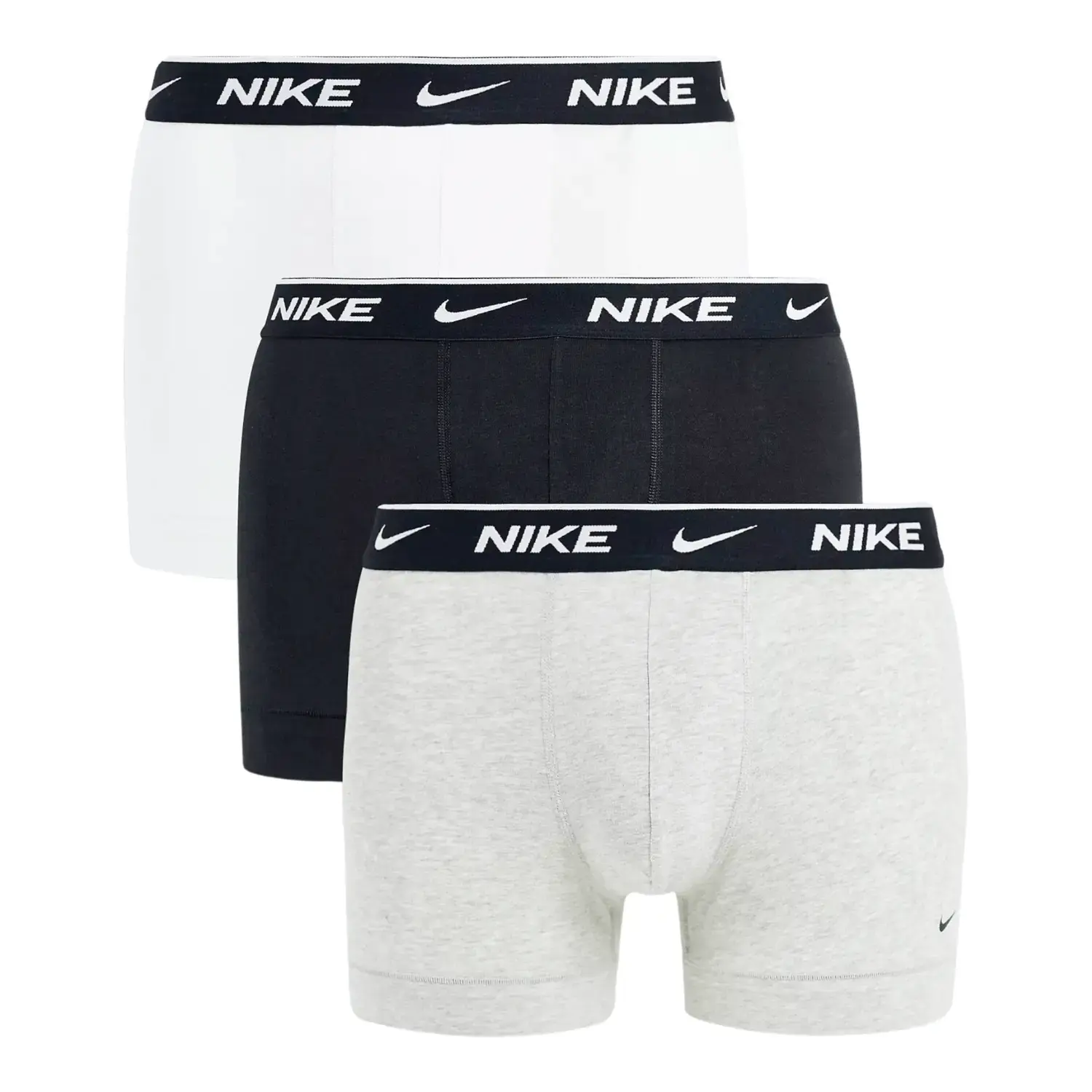 Набор из трех хлопковых эластичных плавок Nike черного/серого/белого цвета. Брендовый дизайн. Эластичная талия. Облегающий крой.