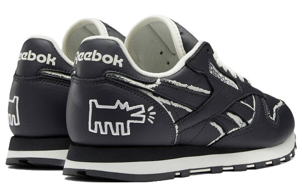 Кроссовки keith haring x classic leather 'dog blackboard chalk drawing' Reebok, черный